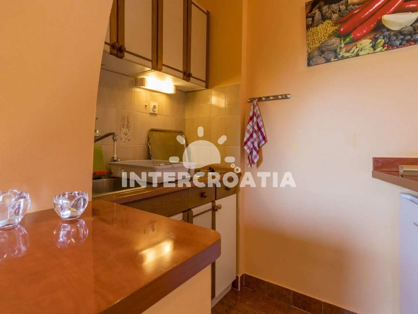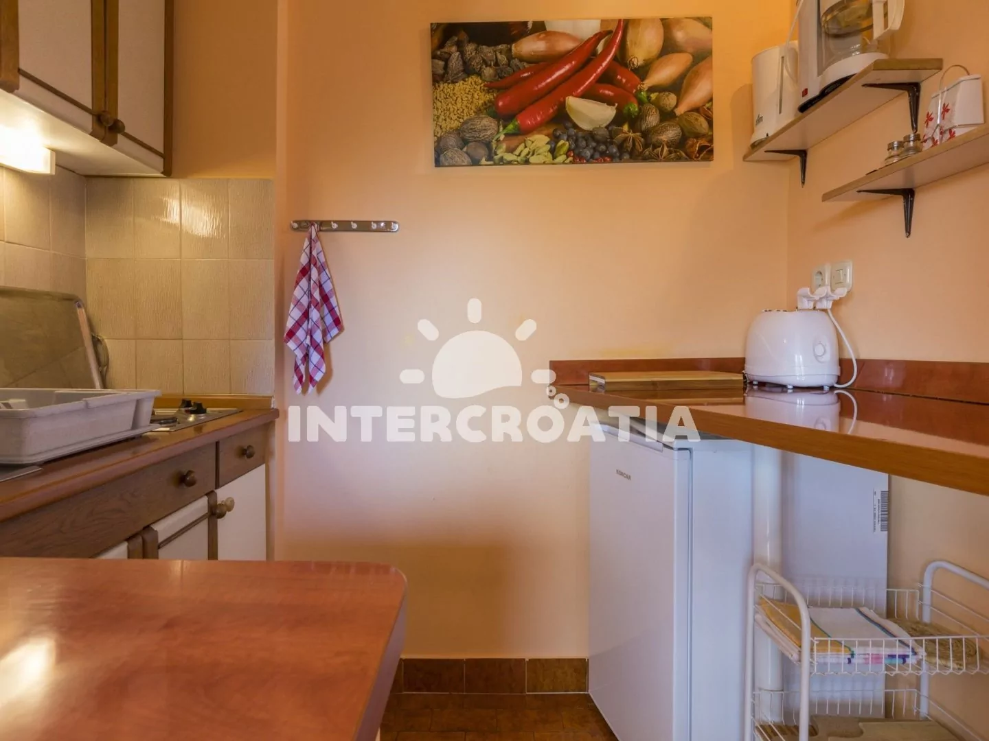 Vkusně zařízený apartmán (60 m2) s terasou, výhledem na moře a venkovním posezením, se nachází v 1. patře domu a je vhodný pro 4 až 5 osob. Obývací pokoj je spojený s kuchyní. Kuchyňská linka je…