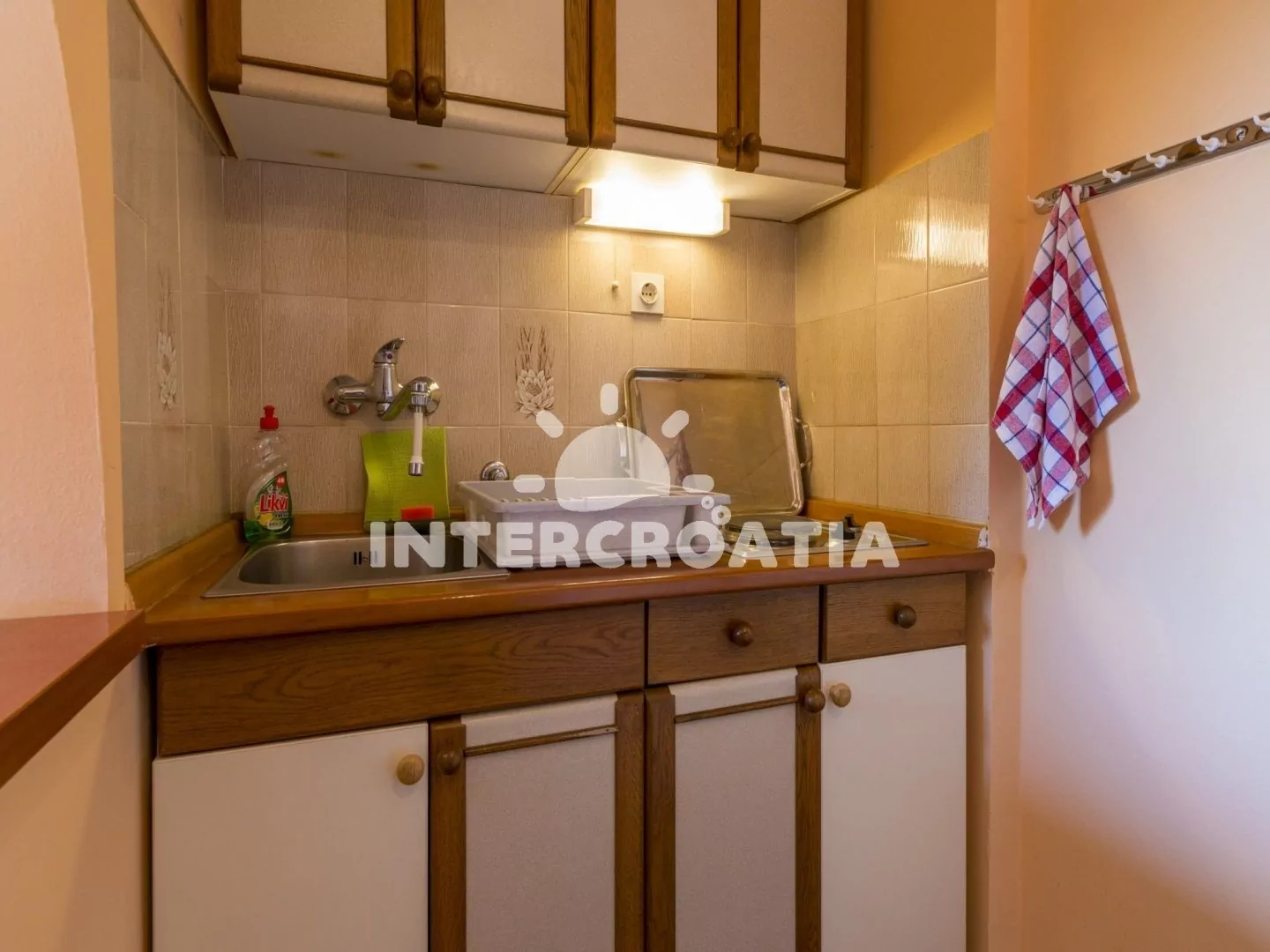 Vzdálenosti: Moře a oblázková, písčitá pláž 200 m (cesta se schody), centrum 200 m, supermarket 300 m, restaurace 450 m, lékárna, diskotéka 9 km, letiště 19 km.