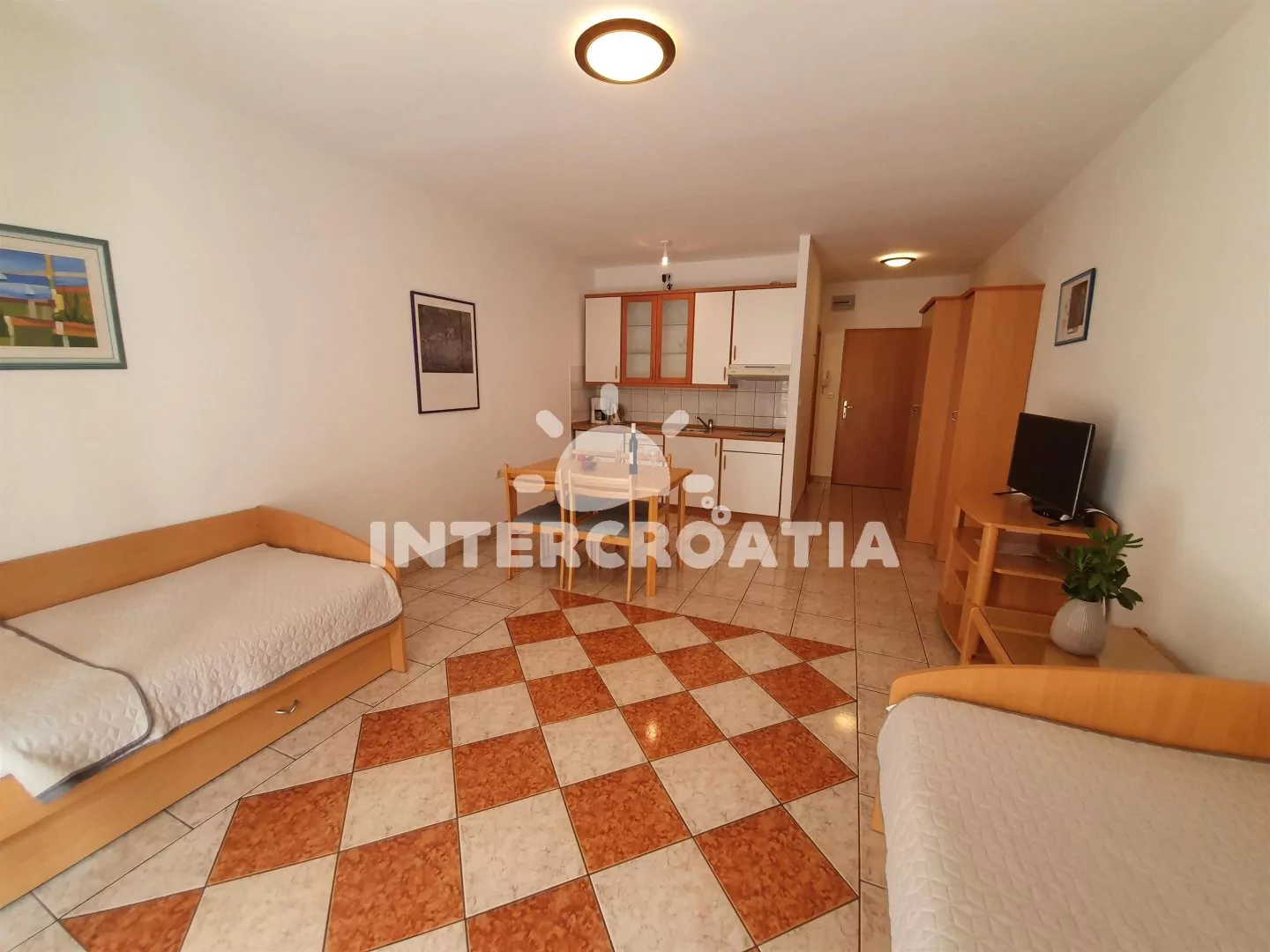 Apartmán (35 m2) typu studio s vlastním balkonem se nachází v 1. patře vily. Obývací místnost je spojena s kuchyní. Kuchyňská linka je vybavena varnou deskou, digestoří, rychlovarnou konvicí,…