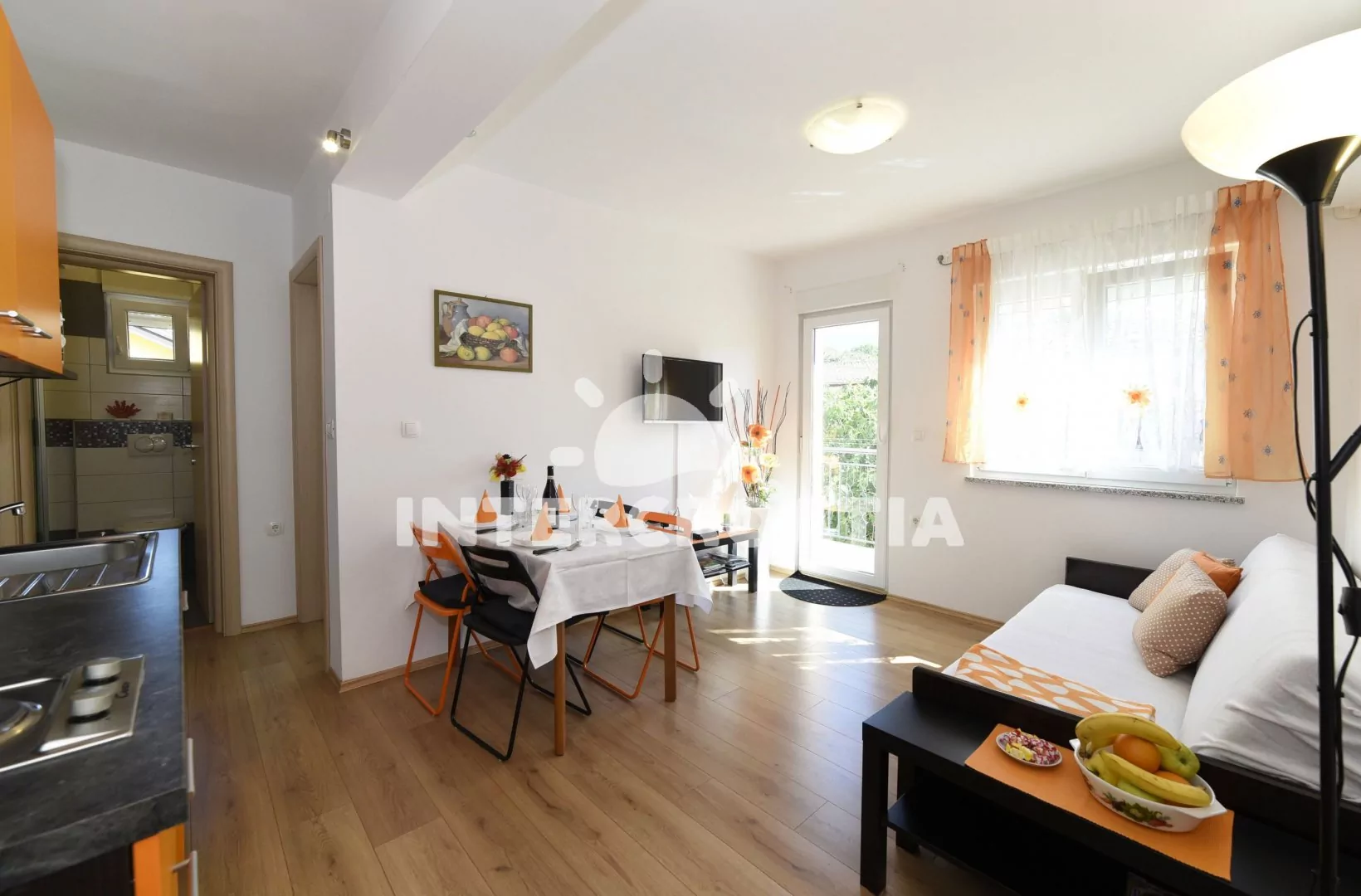 Vzdálenosti: Moře a pláž 410 m, centrum 1,5 km, supermarket 100 m, restaurace 50 m, bar 2,5 km, směnárna 1,1 km, pošta 1,2 km, banka 8,5 km, diskotéka 9 km, letiště (Rijeka) 25 km.