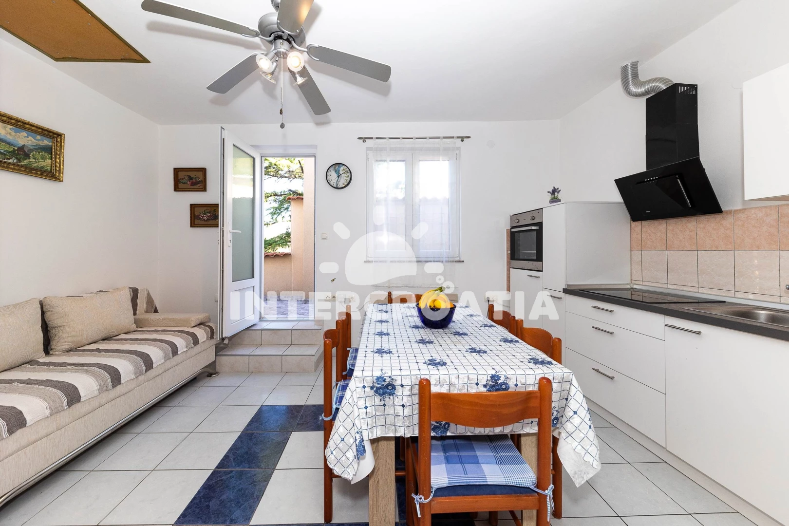 Vzdálenosti: Moře 50 m, pláž 50 m (oblázková a betonové desky), bar 50 m, centrum 100 m, supermarket 300 m, restaurace 400 m, lékárna 9 km, pošta 9 km, ambulance 9 km, banka 9 km, diskotéka 9 km, letiště (Rijeka) 19 km,