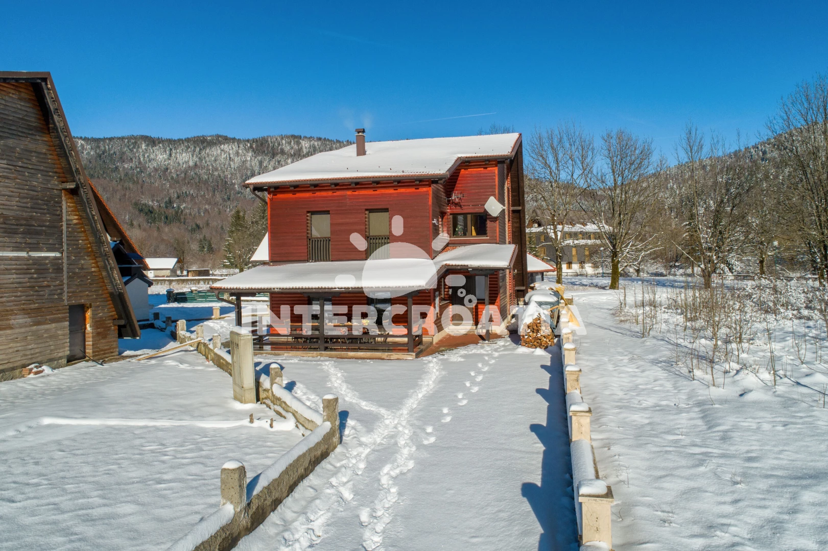 Vzdálenosti: Moře 40 km, pláž 45 km (písčitá, oblázková a větší kamení), centrum 3 km, supermarket 3 km, bar 3 km, lékárna 23 km, veřejná doprava 23 km, čerpací stanice 23 km, ambulance 23 km, restaurace 23 km, pošta 23 km, banka 23 km, marina 45 km, letiště (Rijeka) 73 km, trajekt (Jablanac) 110 km,