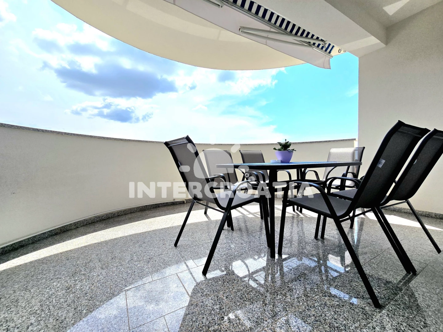 Apartmán (125 m2) s balkonem, s terasou. Nachází se v 1. patře objektu. Apartmán má 3 ložnice a je vhodný pro až 6 osob. Kuchyňská linka je vybavena varnou deskou, troubou, kávovarem, toustovačem, myčkou na nádobí, nádobím, lednicí, mrazákem. K dispozici televize. První ložnice s dvoulůžkem. Druhá ložnice s dvoulůžkem. Třetí ložnice s dvoulůžkem. Koupelna se sprchovým koutem, umyvadlem, fénem a WC. Dále samostatné WC.