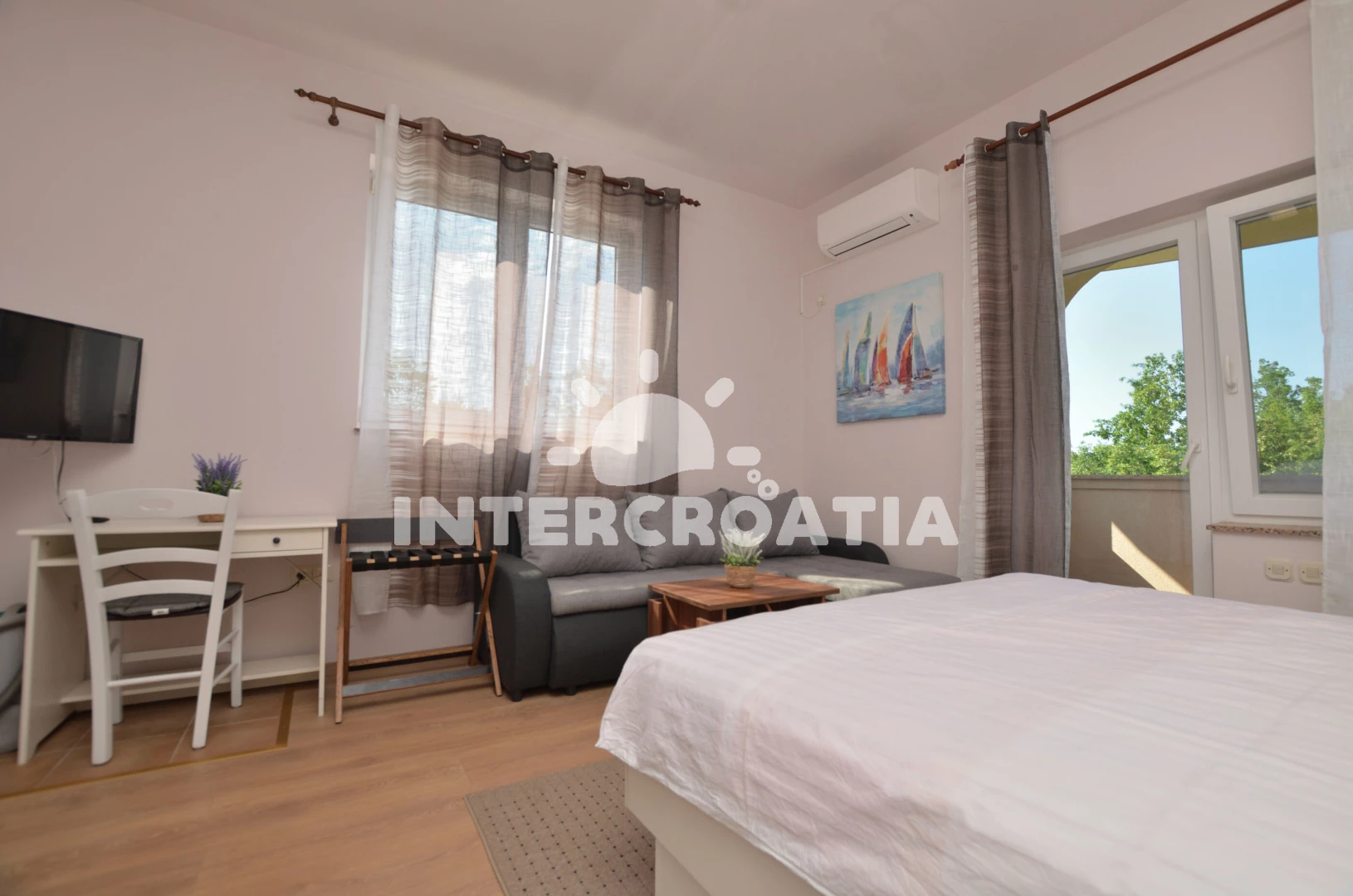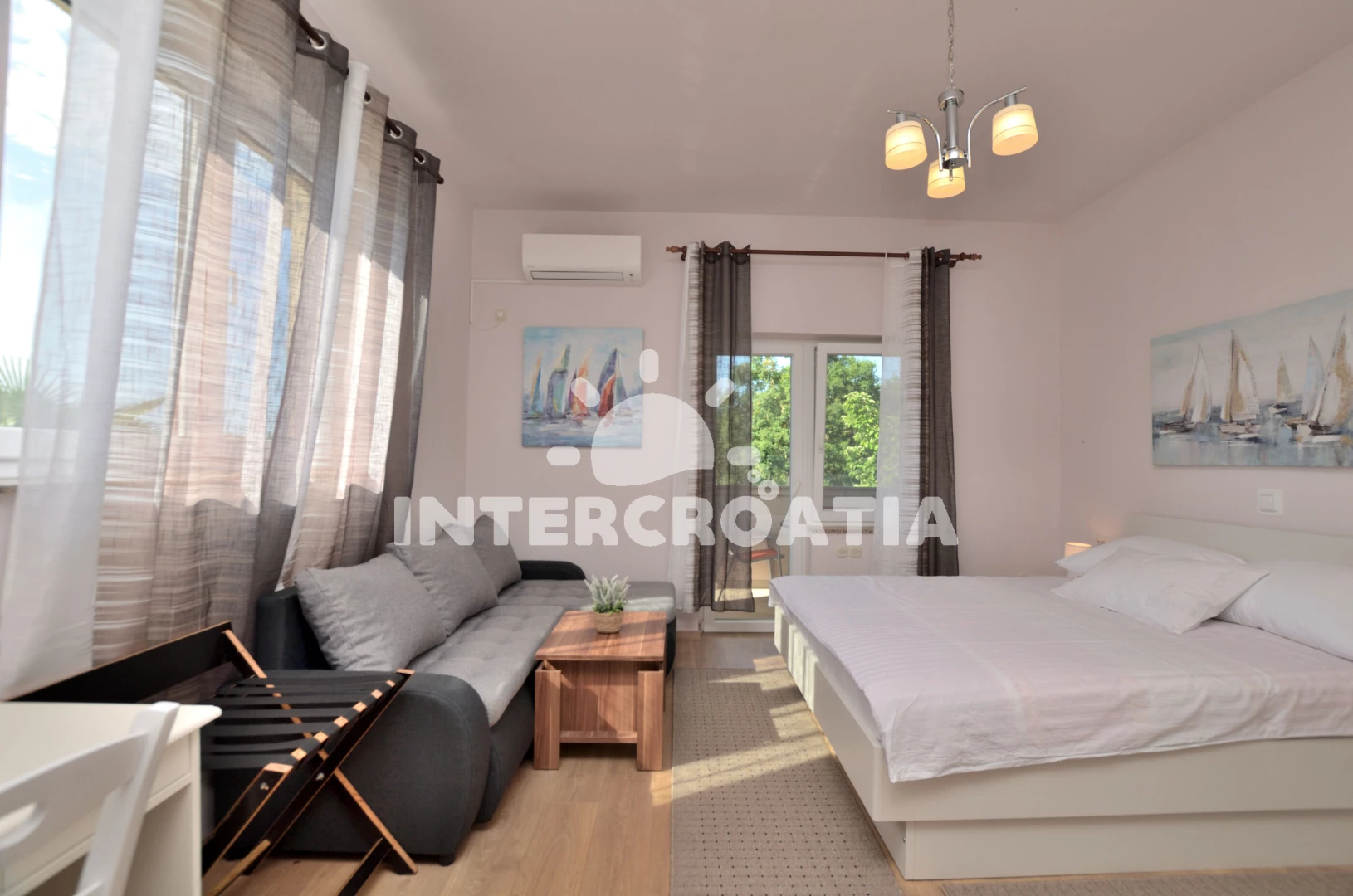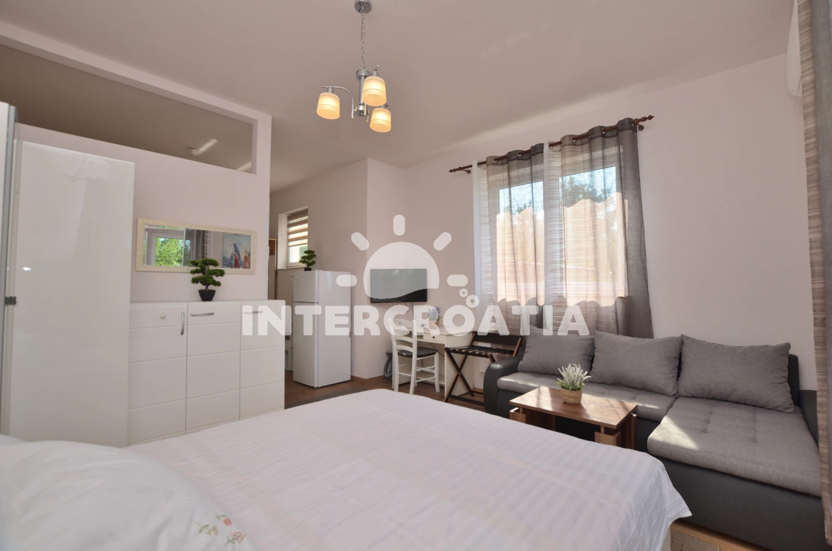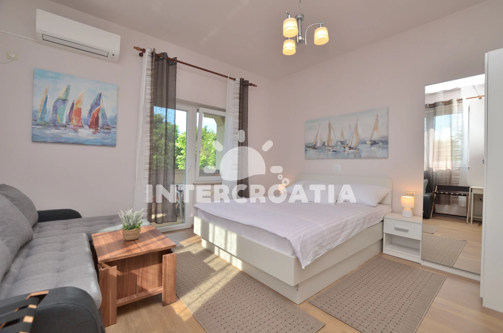 Apartmán se nachází 9400 m od moře a pláže. Pláž je skalnatá a oblázková. U objektu je k dispozici společná zahrada s posezením a grilem. Parkování je před domem.