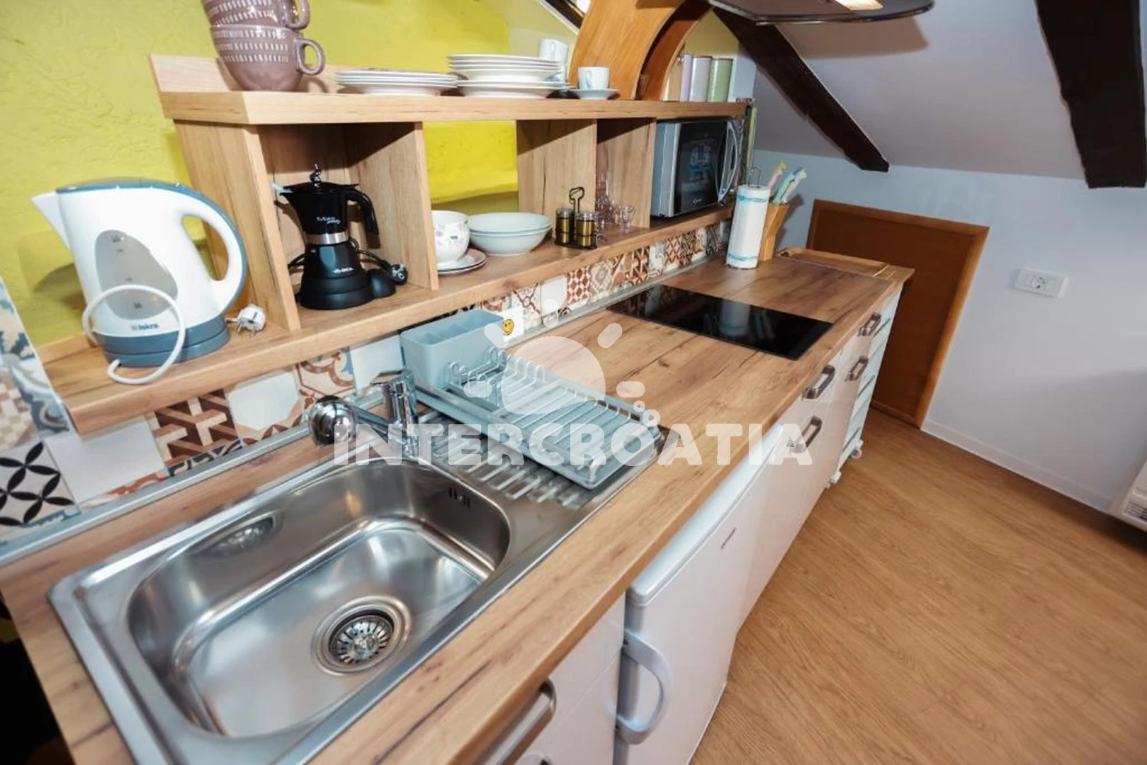 Apartmán typu studio (34 m2). Nachází se ve 3. patře objektu. Kuchyňská linka je vybavena varnou deskou, troubou, kávovarem, toustovačem, mikrovlnnou troubou, rychlovarnou konvicí, nádobím, lednicí,…