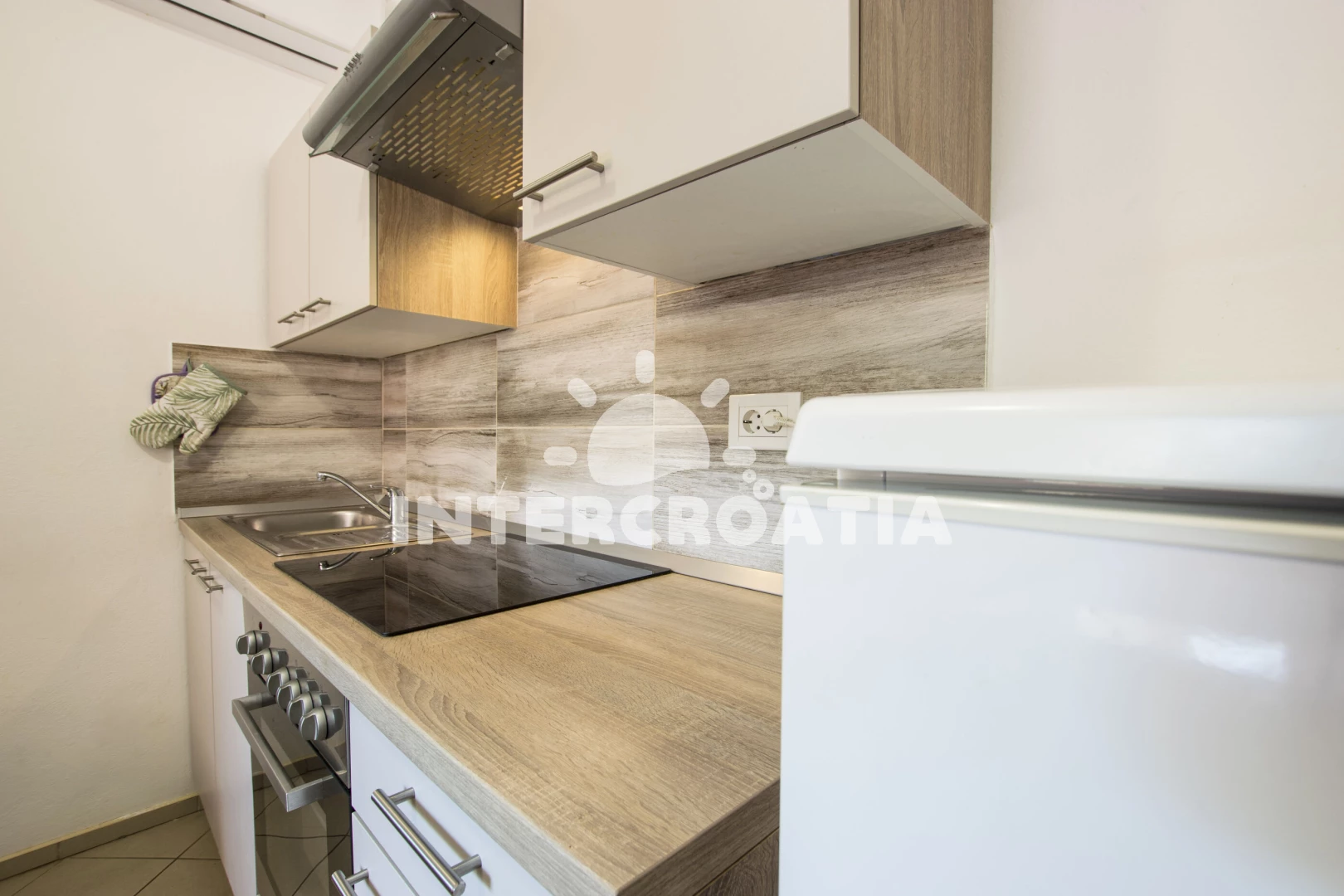 Apartmán (56 m2) s terasou, s balkonem, a výhledem na moře. Nachází se v 1. patře objektu. Apartmán má 2 ložnice a je vhodný pro až 5 osob. Kuchyňská linka je vybavena varnou deskou, troubou,…