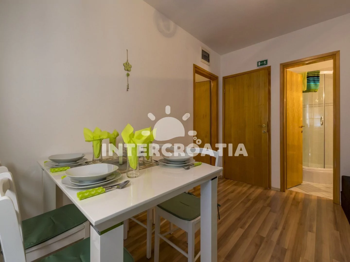 Moderně zařízený apartmánový dům v klidné ulici, 400 m pěší chůzí od pláže a moře. Klimatizované apartmány s lodžiemi a venkovním posezením. Parkovací místa u domu.