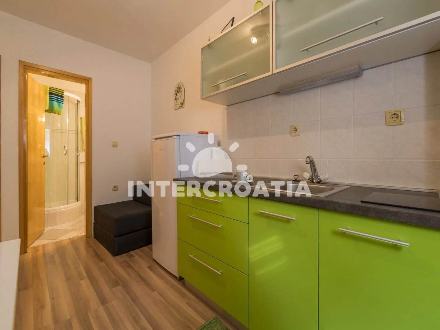 Apartmán (25 m2) s terasou a venkovním posezením se nachází v 1. patře domu a je vhodný pro 2 až 3 osoby. Obývací pokoj je spojený s kuchyní. Kuchyňská linka je vybavena dvouplotýnkovým vařičem, rychlovarnou konvicí, kávovarem, nádobím a lednicí s mrazákem. Obývací pokoj s jídelním stolem pro 4 osoby, křeslem (rozložitelné na extra lůžko pro 1 osobu), televizí se satelitním programem, radiem a klimatizací. Ložnice s dvěma jednolůžky. Koupelna se sprchovým koutem, umyvadlem a wc. Hostům je k dispozici parkování u objektu zdarma.