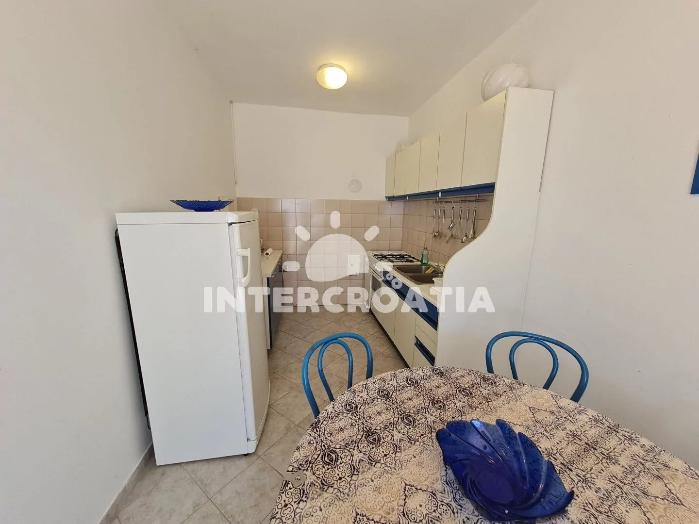 Vzdálenosti: Moře a oblázková pláž 200 m, centrum 100 m, restaurace, bar 300 m, veřejná doprava 400 m, ambulance, lékárna, banka, supermarket, čerpací stanice, pošta, směnárna, přístav, půjčovna motorových člunů 7 km, letiště 51 km, trajekt 55 km.