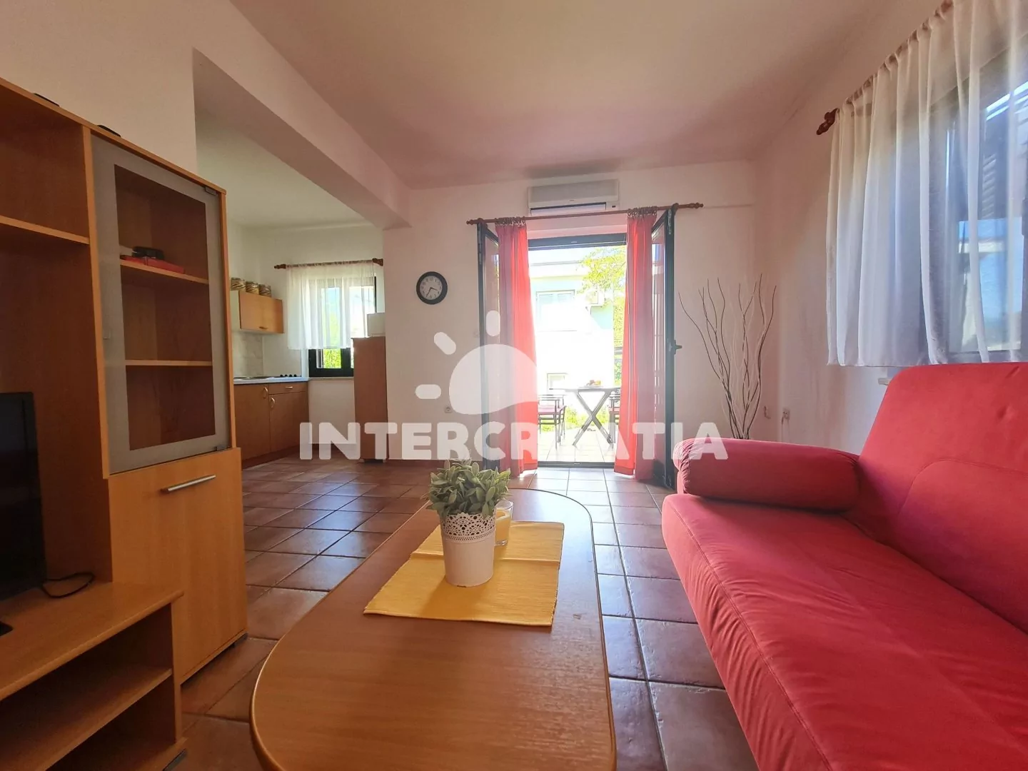 Apartmán (40 m2) s terasou a posezením se nachází v přízemí domu. Apartmán má 1 ložnici a je vhodný pro 2 až 4 osoby. Obývací pokoj je spojený s kuchyní. Kuchyňská linka je vybavena varnou deskou, mikrovlnnou troubou, rychlovarnou konvicí, kávovarem, toustovačem, nádobím a lednicí s mrazákem. Obývací pokoj s pohovkou (rozložitelná na extra lůžko pro 2 osoby), televizí, klimatizací a vstupem na terasu. Ložnice s jedním dvoulůžkem. Koupelna se sprchovým koutem, umyvadlem a wc. Hostům je k dispozici parkování u objektu zdarma.