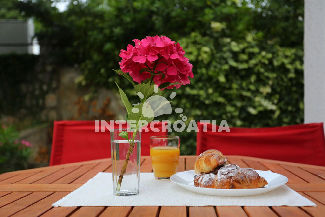 Apartmánový dům se zahradou se nachází 150 m pěší chůzí od moře a pláže. Dům nabízí ubytování ve 4 klimatizovaných apartmánech s lodžiemi a venkovním posezením. U domu zahrada se zelení, společná terasa s posezením a zděný gril. Parkovací místa přímo u domu.