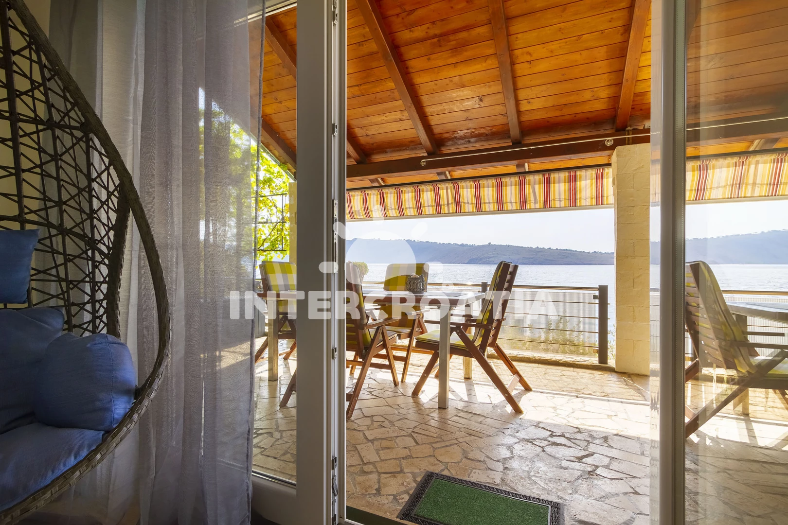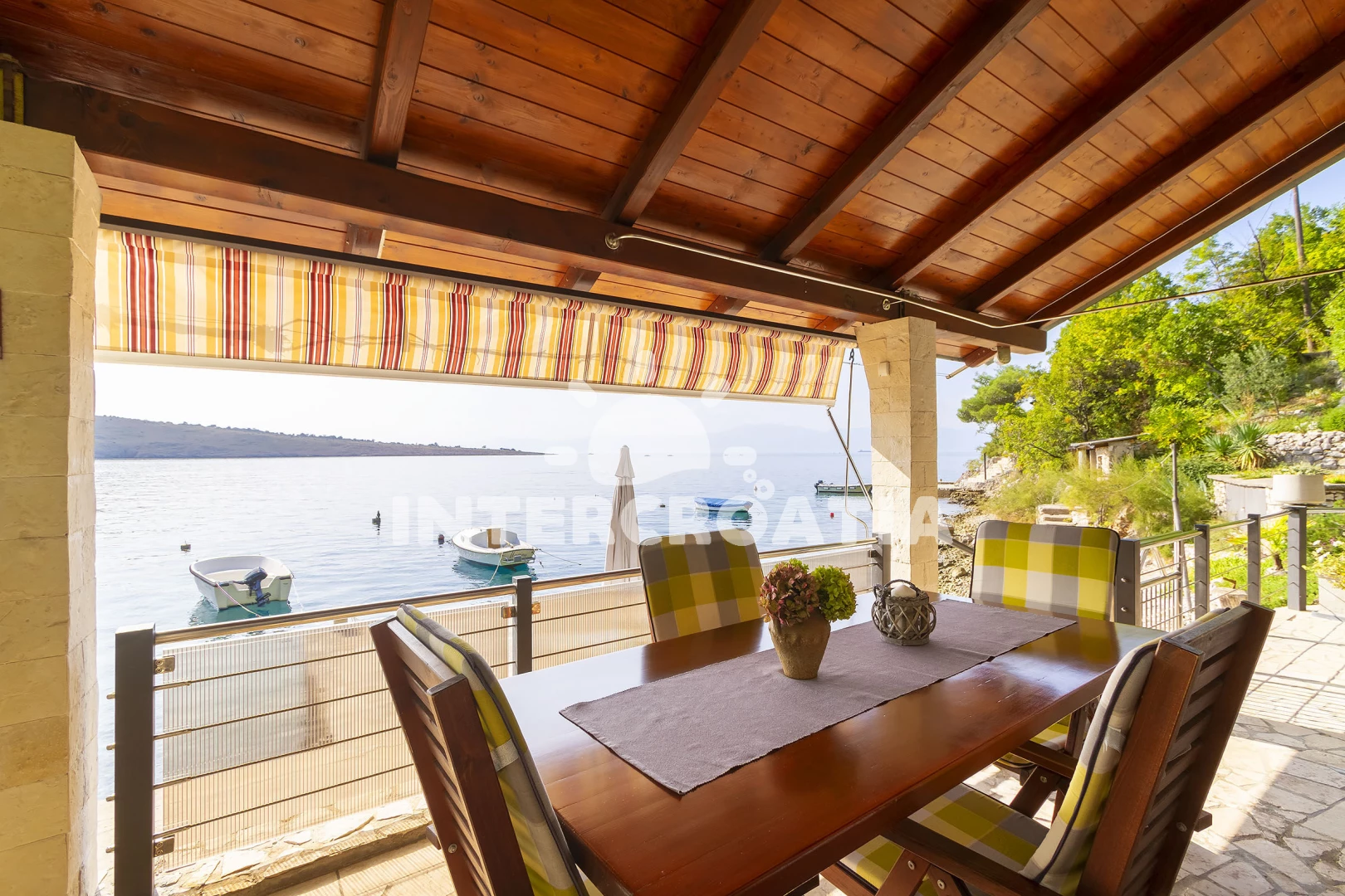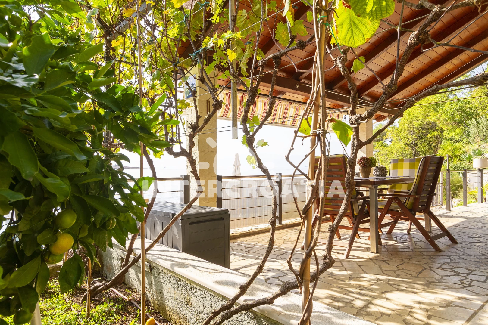 Apartmán se nachází 20 m od moře a pláže. Pláž je betonové desky, skalnatá a větší kamení. U objektu je k dispozici společná zahrada s posezením a grilem. Parkování je 300m - 500m od domu.