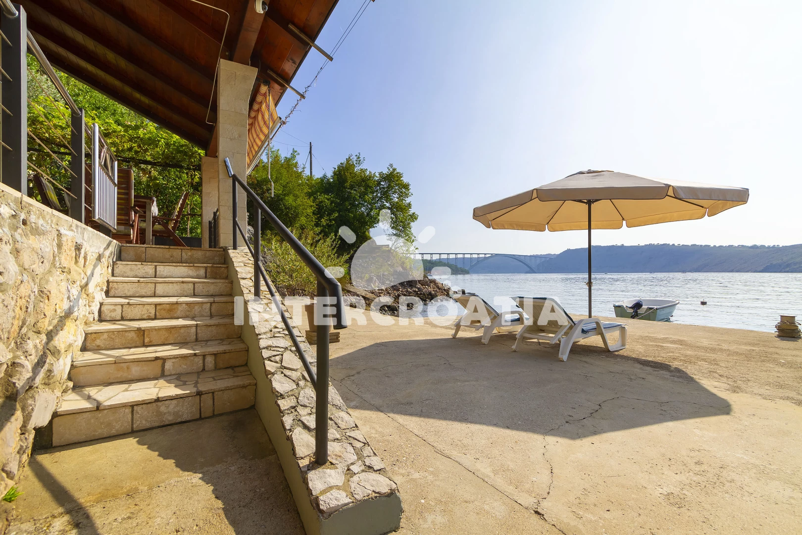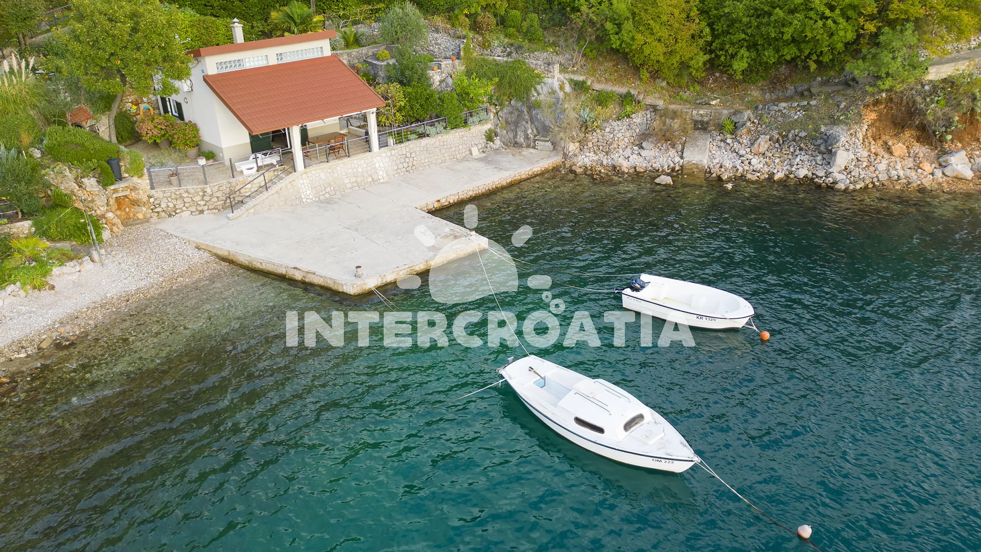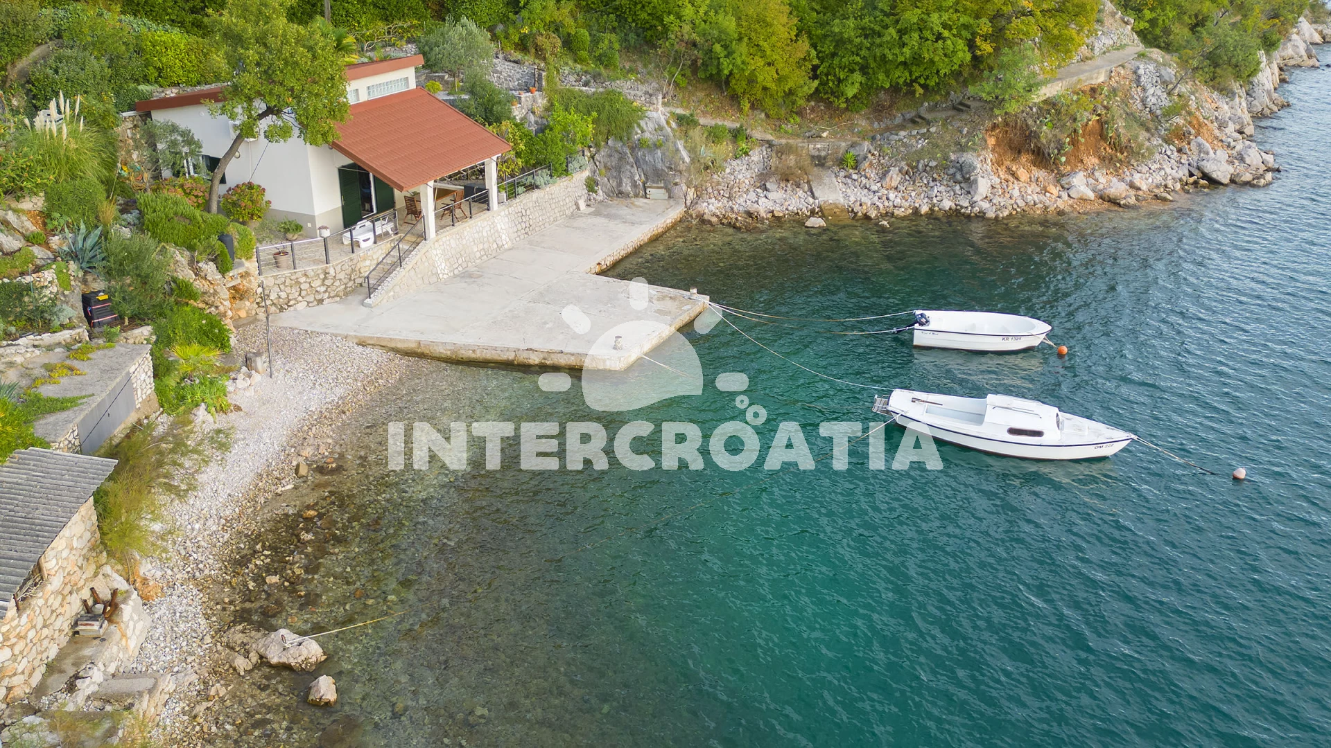Vzdálenosti: Moře 15 m, pláž 20 m (betonové desky, skalnatá a větší kamení), kotviště pro čluny 6 m, veřejná doprava 400 m, restaurace 500 m, bar 500 m, potápění 500 m, supermarket 1 km, čerpací stanice 1 km, ambulance 2 km, směnárna 2 km, lékárna 2 km, marina 2 km, banka 2 km, pošta 2 km, muzeum 2 km, diskotéka 2 km, centrum 2 km, půjčovna kol 3 km, půjčovna motorových člunů 5 km, letiště (Rijeka) 8 km, trajekt (Rijeka) 14,9 km, park Plitvice 191 km,