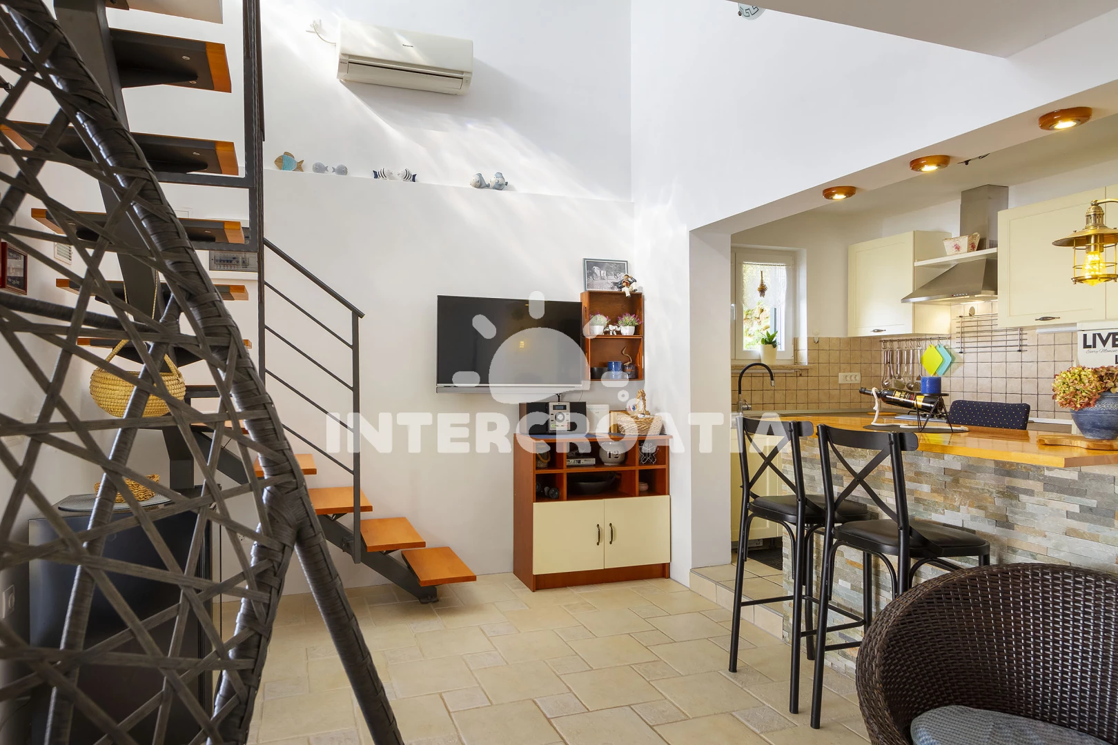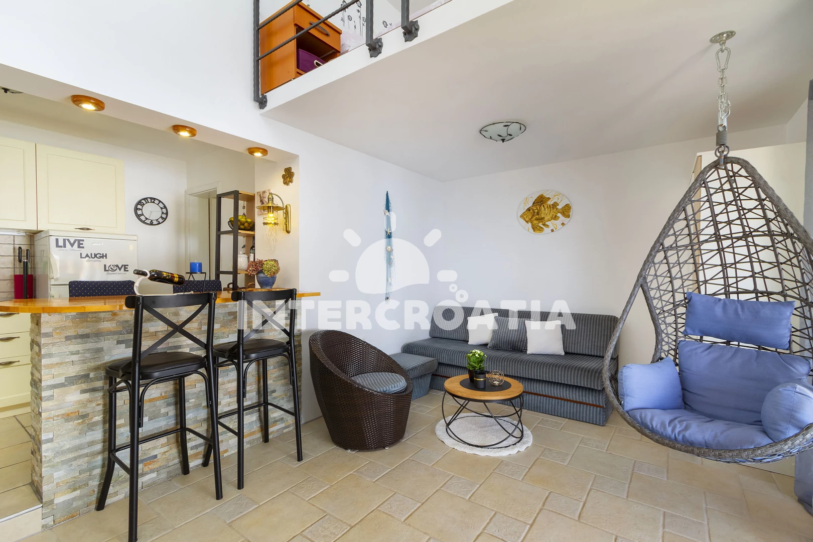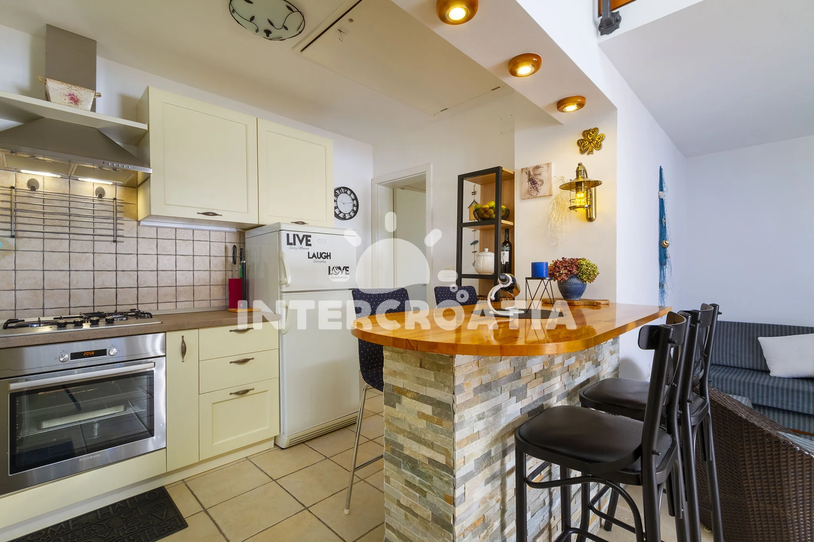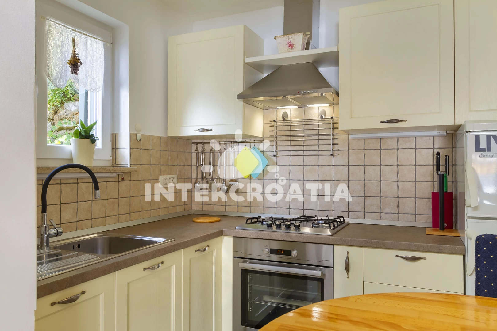 Vzdálenosti: Moře 15 m, pláž 20 m (betonové desky, skalnatá a větší kamení), kotviště pro čluny 6 m, veřejná doprava 400 m, restaurace 500 m, bar 500 m, potápění 500 m, supermarket 1 km, čerpací stanice 1 km, ambulance 2 km, směnárna 2 km, lékárna 2 km, marina 2 km, banka 2 km, pošta 2 km, muzeum 2 km, diskotéka 2 km, centrum 2 km, půjčovna kol 3 km, půjčovna motorových člunů 5 km, letiště (Rijeka) 8 km, trajekt (Rijeka) 14,9 km, park Plitvice 191 km,