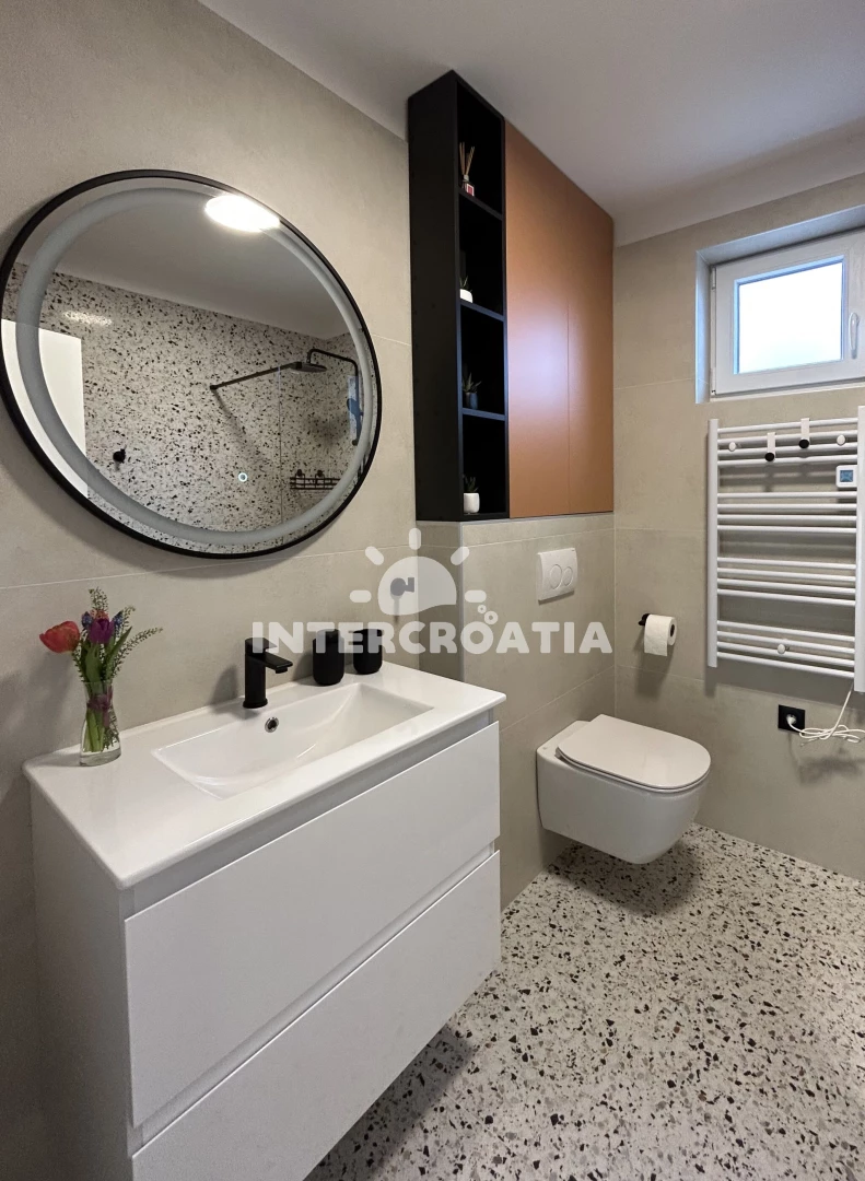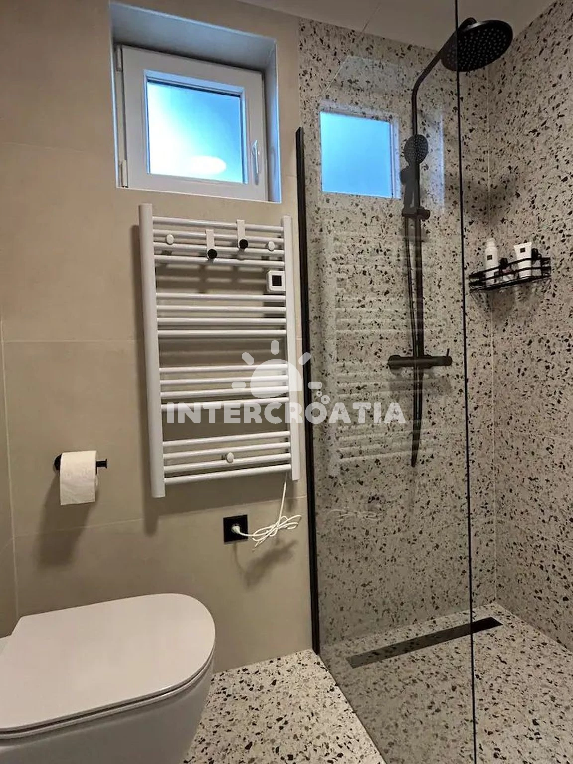 Apartmán (80 m2) s terasou, a výhledem na moře. Nachází se ve zvýšeném přízemí objektu. Apartmán má 3 ložnice a je vhodný pro až 6 osob. Kuchyňská linka je vybavena varnou deskou, troubou,…