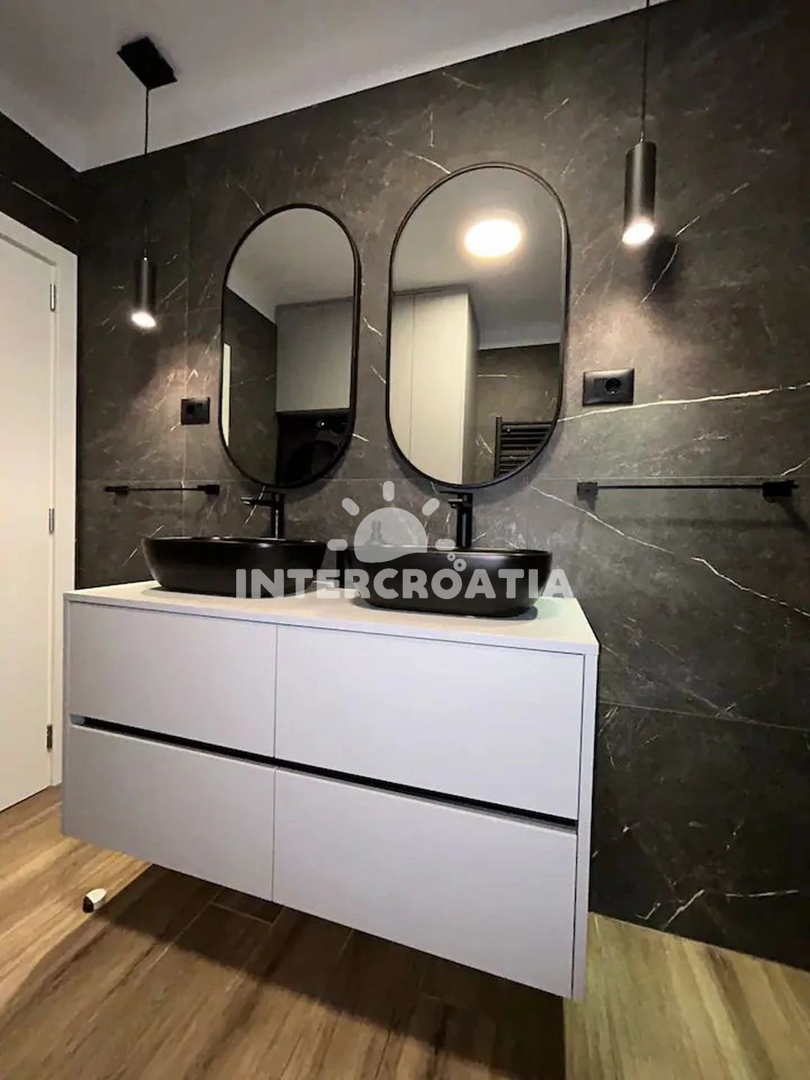 Apartmán (80 m2) s terasou, a výhledem na moře. Nachází se ve zvýšeném přízemí objektu. Apartmán má 3 ložnice a je vhodný pro až 6 osob. Kuchyňská linka je vybavena varnou deskou, troubou, toustovačem, kávovarem, myčkou na nádobí, mikrovlnnou troubou, rychlovarnou konvicí, nádobím, lednicí, mrazákem. K dispozici televize, žehlička. První ložnice s dvoulůžkem. Druhá ložnice s dvoulůžkem. Třetí ložnice se 2 jednolůžky. První koupelna se sprchovým koutem, umyvadlem, fénem a WC. Druhá koupelna se sprchovým koutem, umyvadlem, fénem a WC.