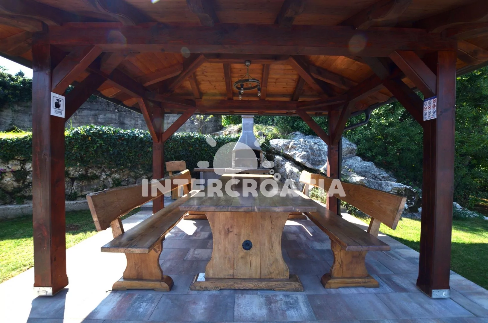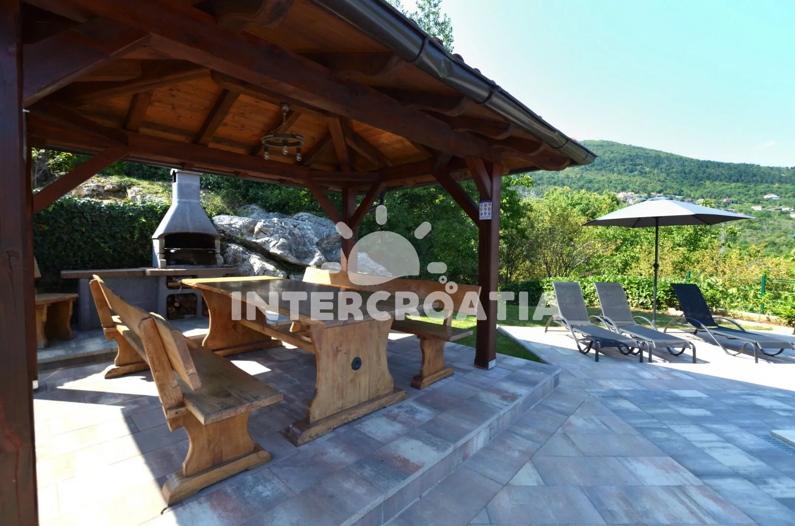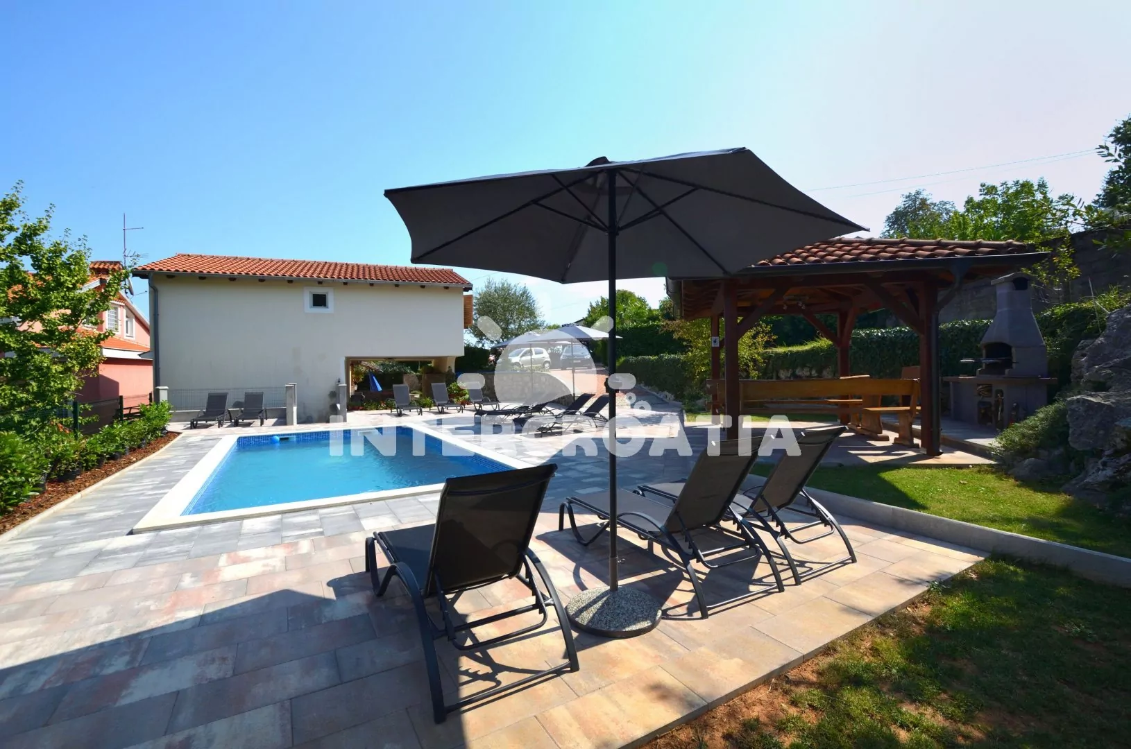 Vila s bazénem umístěná v klidném prostředí místní krajiny se nachází 3 km od moře a pláže. U vily společná pergola, terasa s posezením a grilem. U bazénu lehátka se slunečníky, zahradní sprcha a hezký výhled do krajiny. K dispozici je ubytování ve 2 klimatizovaných apartmánech s lodžiemi a venkovním posezením. Kolem vily oplocená zahrada, ovocný sad a vydlážděný vjezd s parkovacími místy pro automobily.