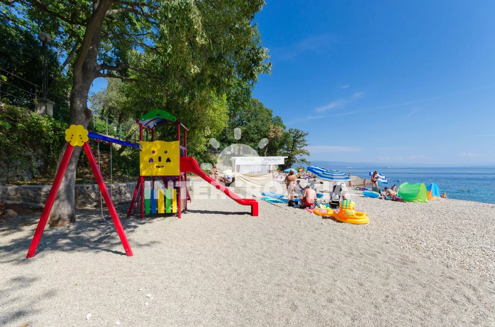 Vzdálenosti: Moře 900 m, betonová pláž 1,1 km, obchod 1,5 km, restaurace, bar, centrum, lékárna, směnárna, banka, pošta, muzeum a půjčovna cyklistických kol 2 km, veřejná doprava 200 m, čerpací stanice 1,5 km, půjčovna motorových člunů 3,5 km, tenisové kurty 4 km, potápění 4,5 km, ambulance 9 km, diskotéka 7 km, přístav a půjčovna motorových člunů 5,5 km, trajekt (Brestova) 8,4 km, letiště (Rijeka) 47 km.