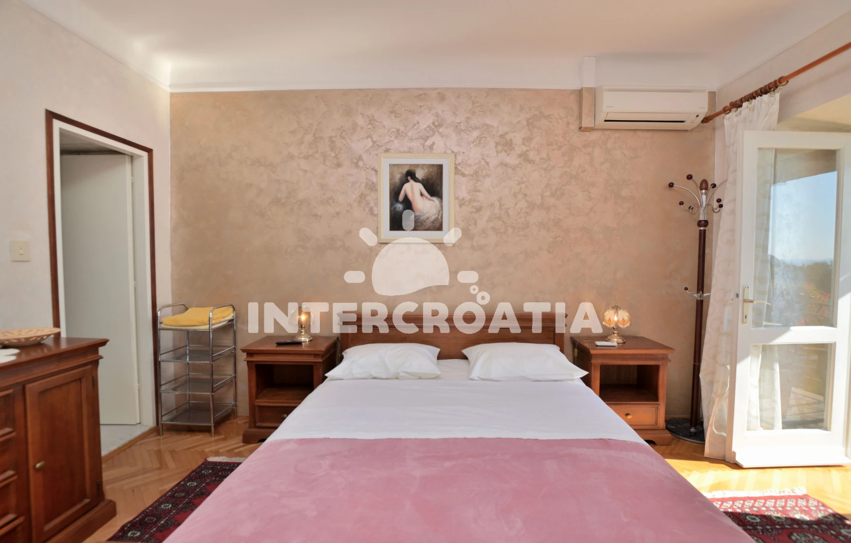 Apartmán (180 m2) s balkonem, a výhledem na moře. Nachází se v 1. patře objektu. Apartmán má 4 ložnice a je vhodný pro až 8 osob. Kuchyňská linka je vybavena varnou deskou, toustovačem, kávovarem, troubou, myčkou na nádobí, mikrovlnnou troubou, rychlovarnou konvicí, nádobím, lednicí, mrazákem. K dispozici televize, žehlička. První ložnice s dvoulůžkem. Druhá ložnice s dvoulůžkem. Třetí ložnice s dvoulůžkem. Čtvrtá ložnice s dvoulůžkem. První koupelna se sprchovým koutem, umyvadlem, fénem a WC. Druhá koupelna se sprchovým koutem, umyvadlem, fénem a WC. Třetí koupelna se sprchovým koutem, umyvadlem, fénem a WC. Čtvrtá koupelna se sprchovým koutem, umyvadlem, fénem a WC.