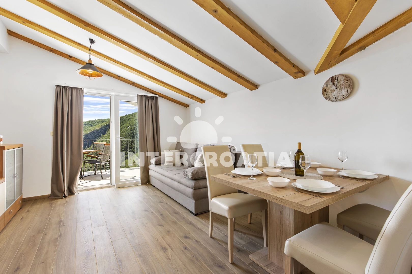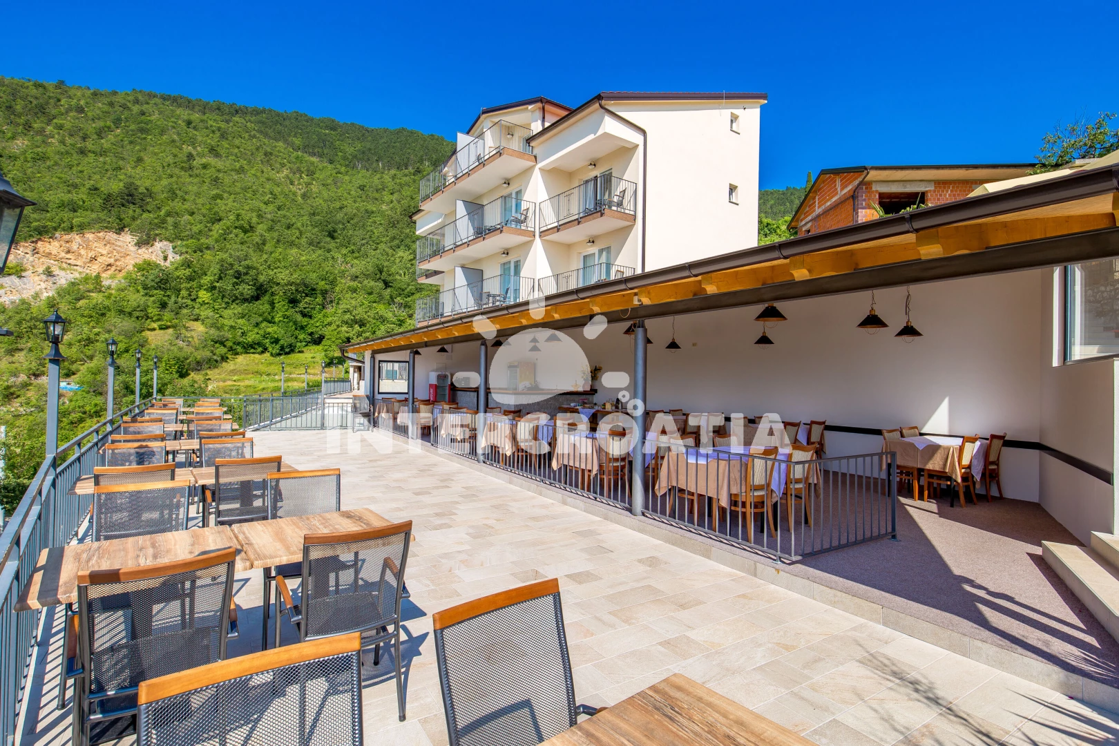 Vzdálenosti: Moře 2,2 km, pláž 7,5 km (oblázková a betonové desky), bar 10 m, restaurace 10 m, veřejná doprava 50 m, supermarket 4 km, pošta 7,5 km, směnárna 7,5 km, marina 7,5 km, banka 7,5 km, čerpací stanice 7,5 km, ambulance 7,5 km, centrum 7,5 km, lékárna 7,5 km, trajekt (Brestova) 31,6 km, letiště (Rijeka) 53 km, park Plitvice 68,9 km,