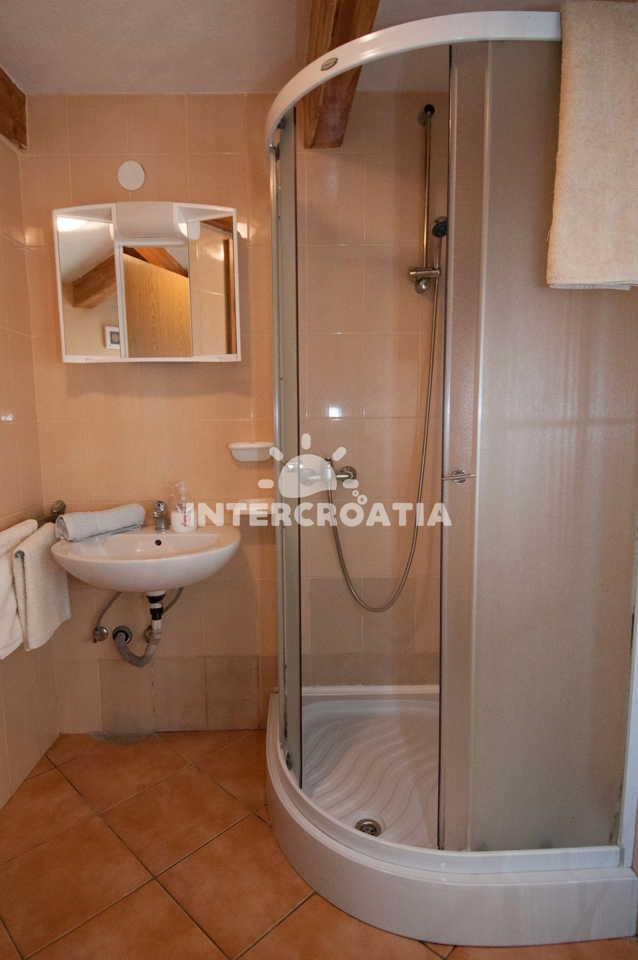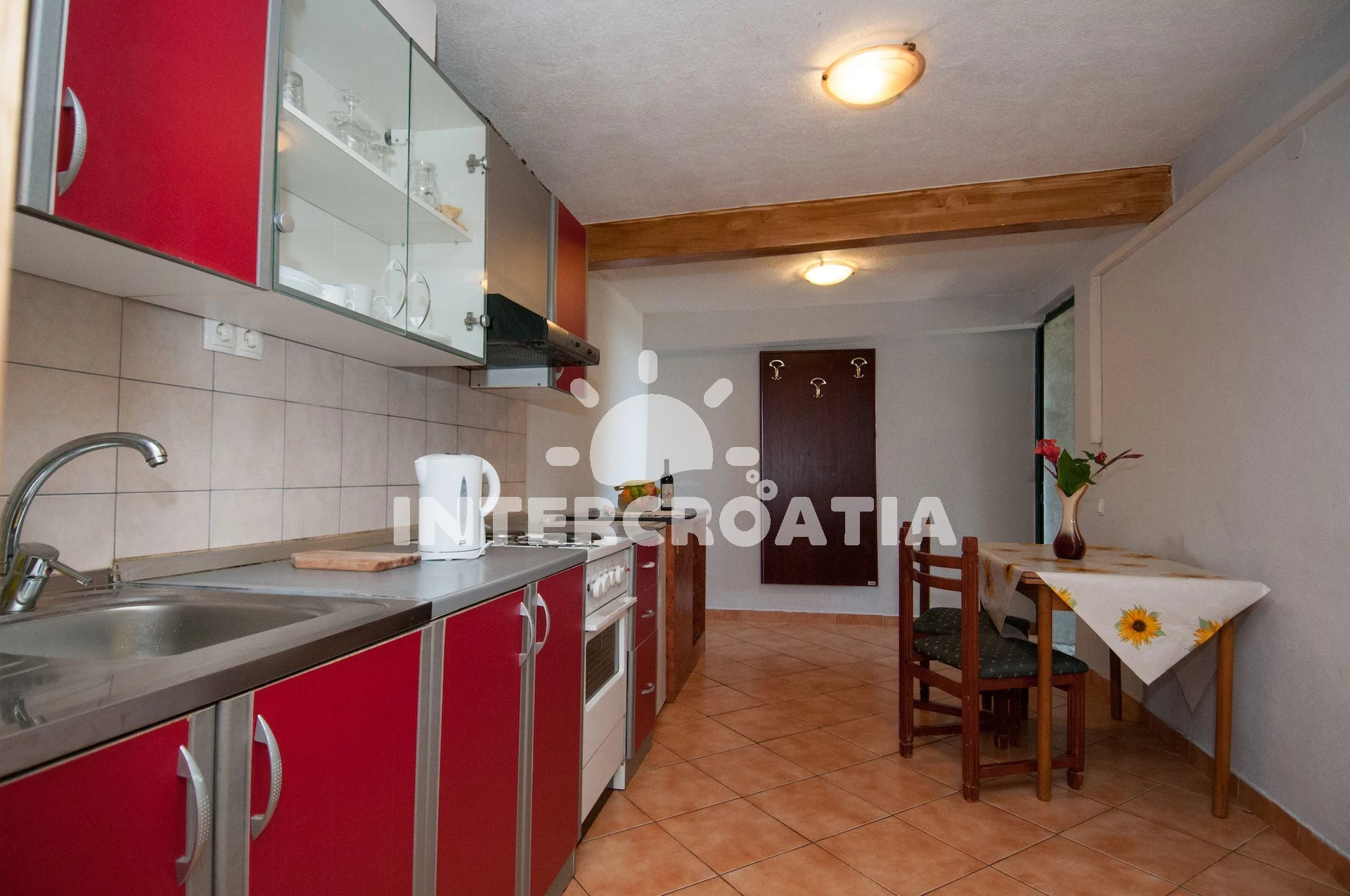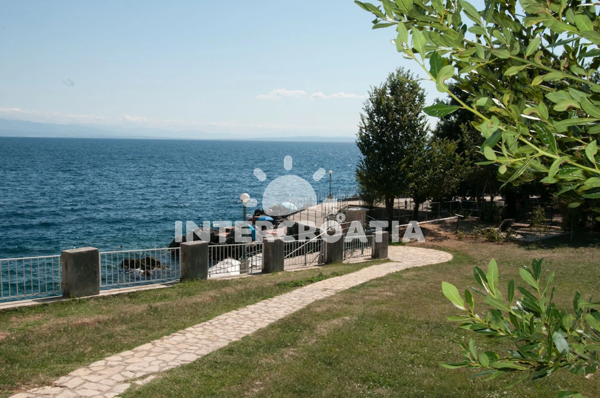 Vzdálenosti: Moře 60 m, pláž 50 m (skalnatá, oblázková a betonové desky), směnárna 50 m, restaurace 50 m, bar 50 m, centrum 50 m, supermarket 50 m, veřejná doprava 50 m, pošta 100 m, lékárna 100 m, banka 100 m, ambulance 500 m, čerpací stanice 500 m, marina 2,9 km, trajekt (Brestova) 23,5 km, letiště (Rijeka) 48,8 km, park Plitvice 64,8 km,