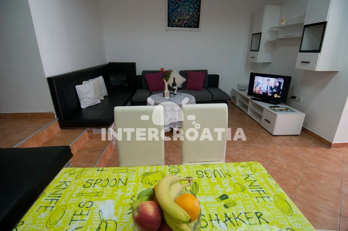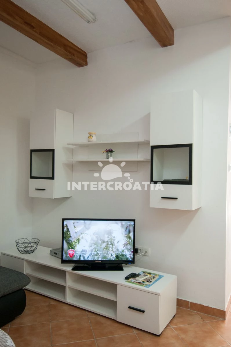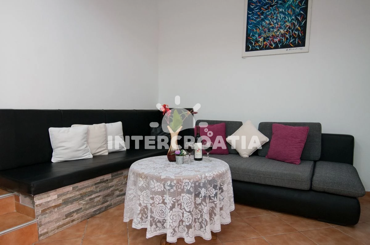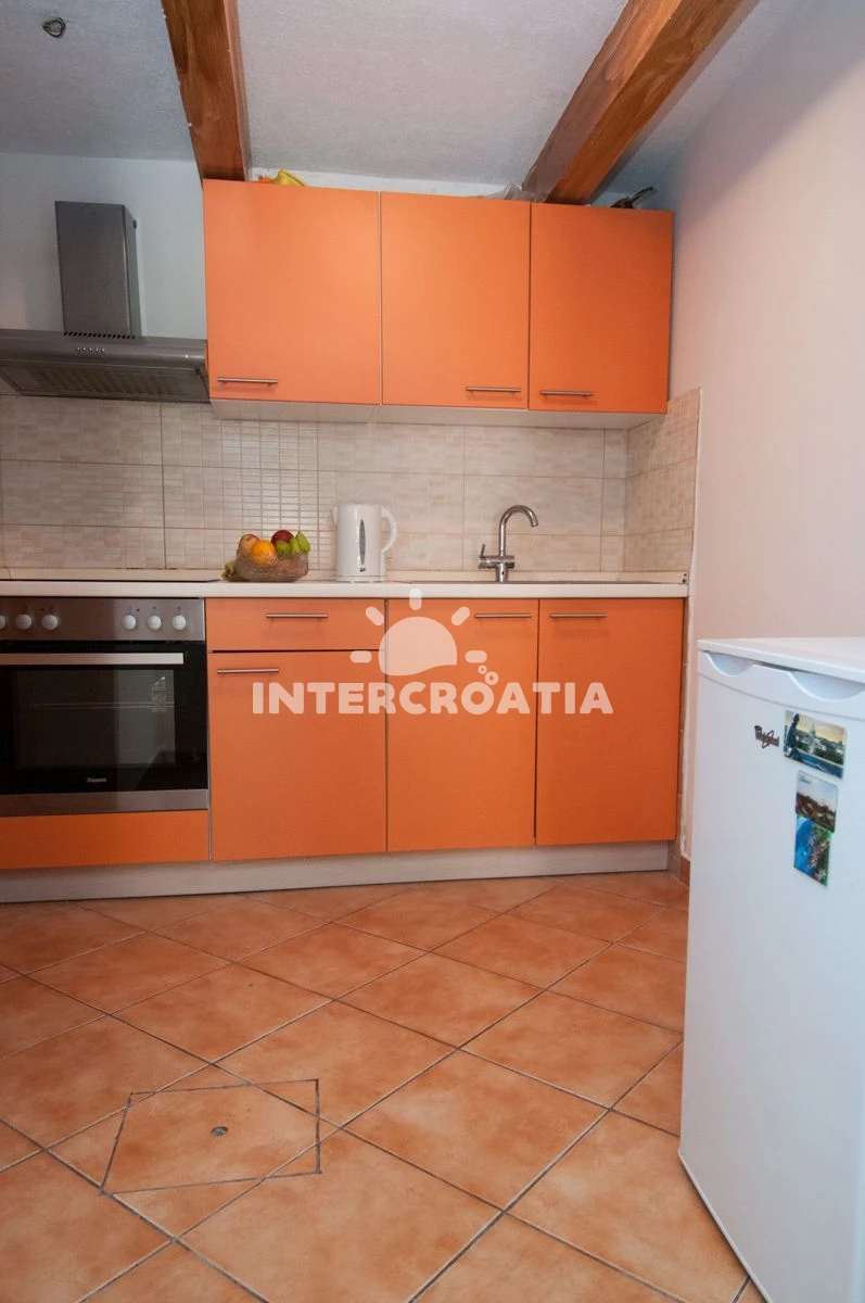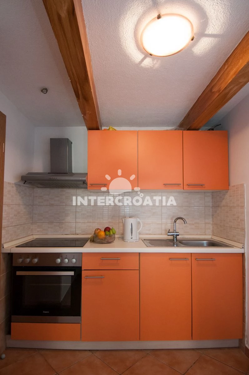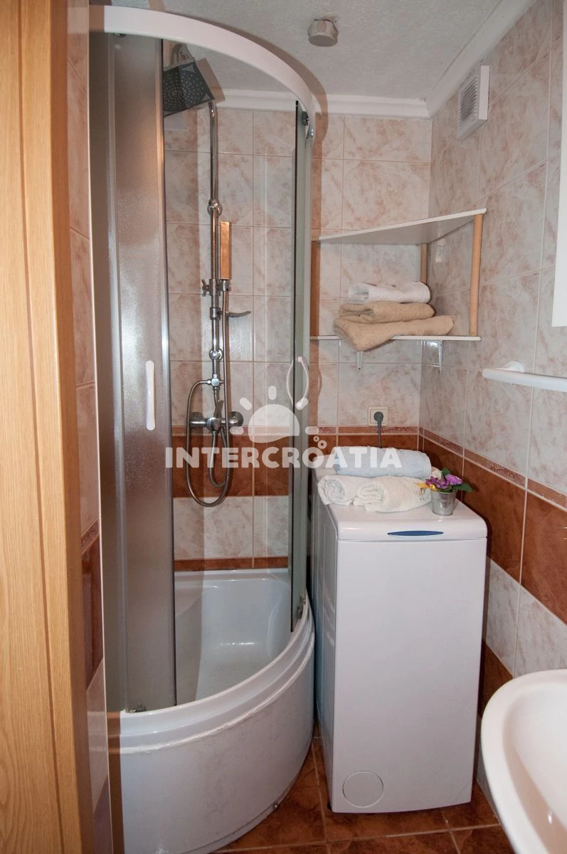 Vzdálenosti: Moře 60 m, pláž 50 m (skalnatá, oblázková a betonové desky), směnárna 50 m, restaurace 50 m, bar 50 m, centrum 50 m, supermarket 50 m, veřejná doprava 50 m, pošta 100 m, lékárna 100 m, banka 100 m, ambulance 500 m, čerpací stanice 500 m, marina 2,9 km, trajekt (Brestova) 23,5 km, letiště (Rijeka) 48,8 km, park Plitvice 64,8 km,
