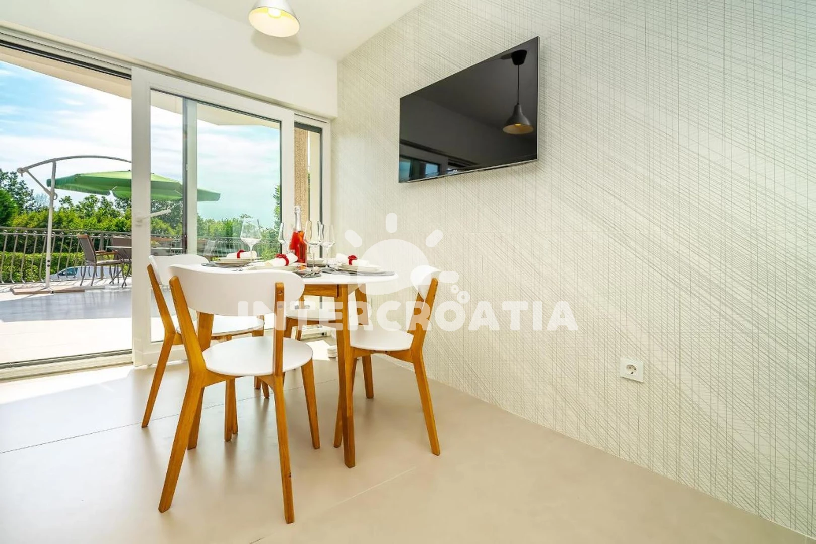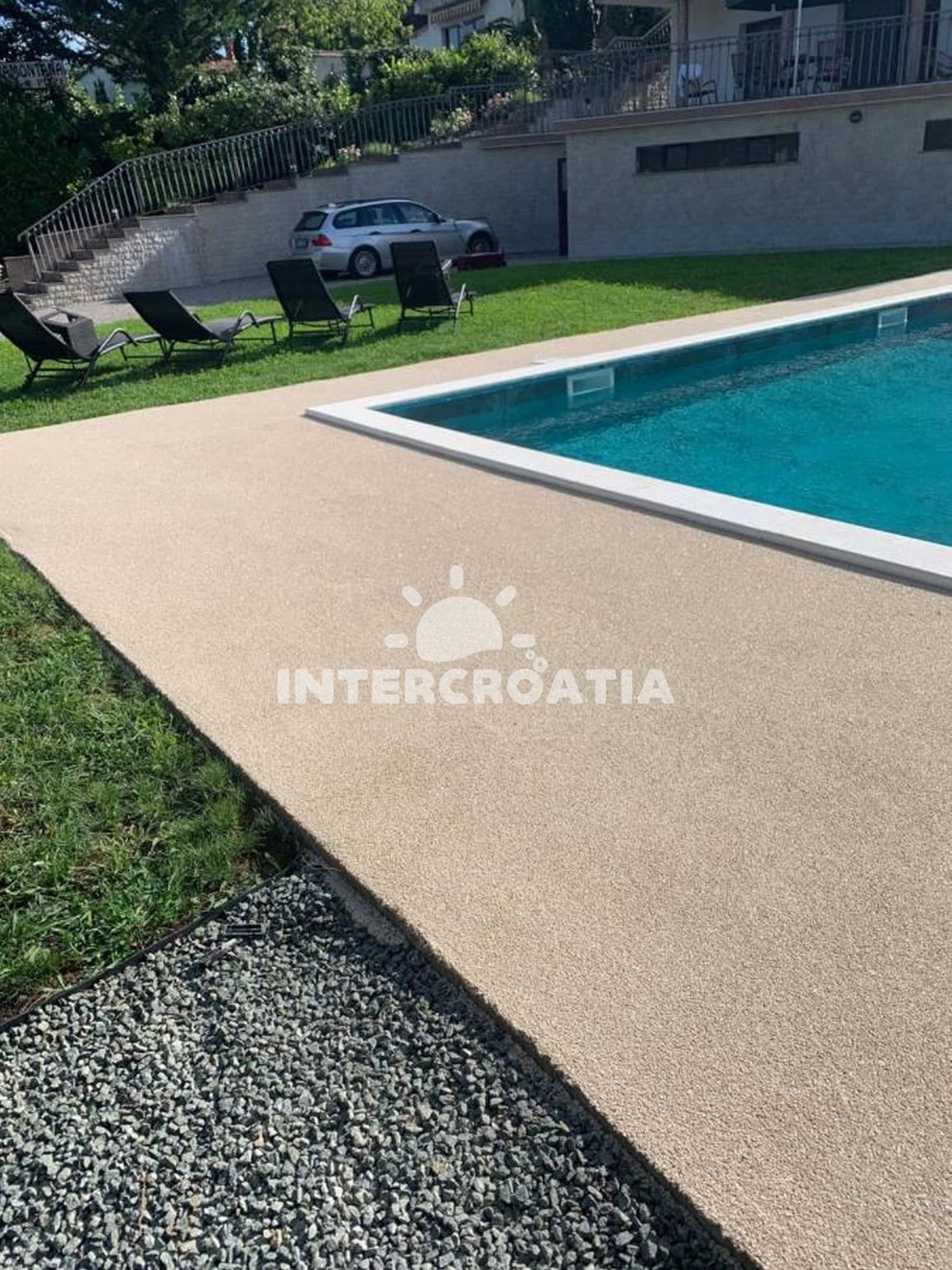 Apartmán se nachází 3900 m od moře a pláže. Pláž je oblázková a betonové desky. Apartmán disponuje bazénem s lehátky pro ubytované hosty. U objektu je k dispozici společná zahrada s posezením a grilem. Parkování je před domem.
