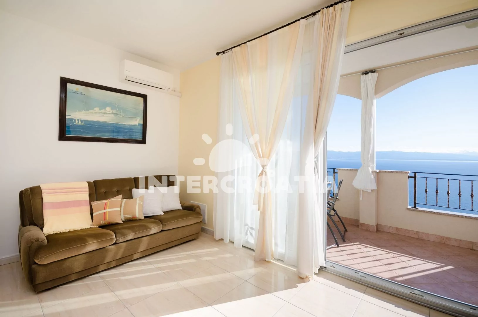 Vilka v klidné lokalitě menšího letoviska Mošćenička Draga, zahrada s posezením u grilu, od objektu výhled na moře, apartmány s lodžiemi a posezením. Parkování je zajištěno u objektu.
