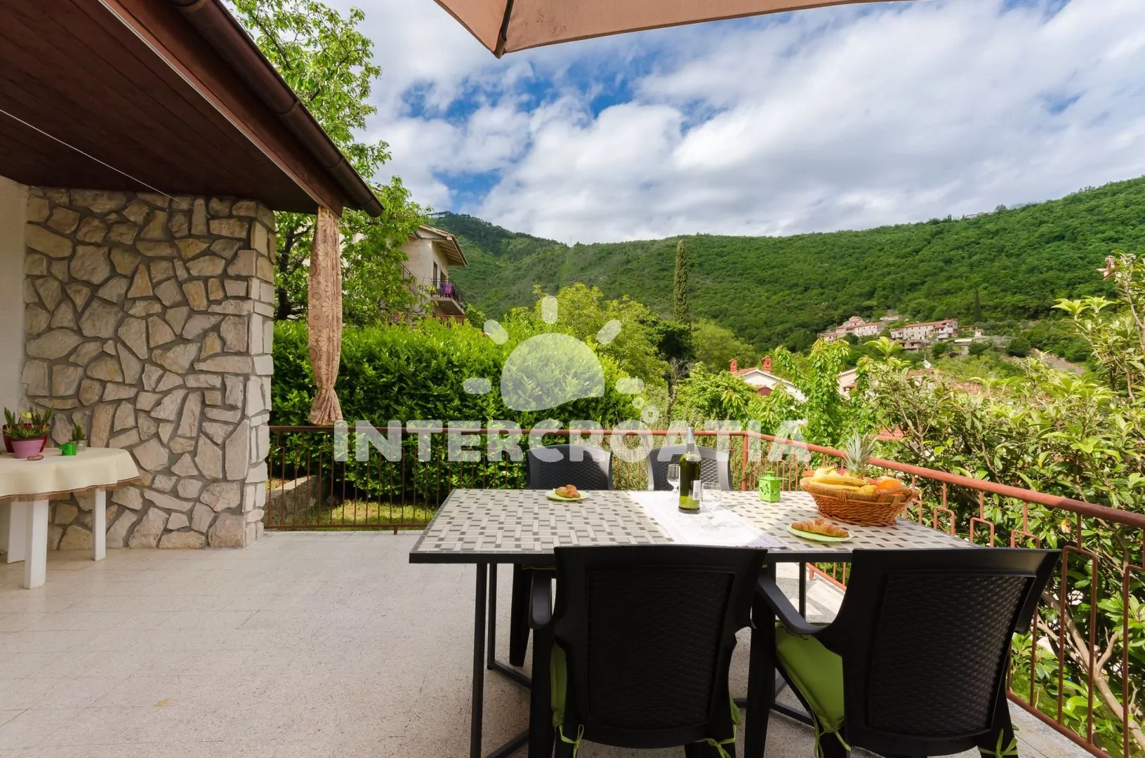 Samostatně stojící domek s výhledem na moře a venkovním posezením na zahradě, nebo na terase u apartmánu. Parkování u objektu.