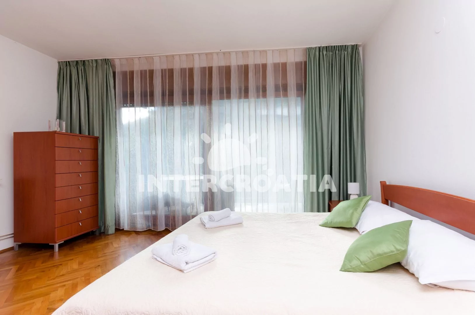 Mošćenička Draga představuje ideální destinaci pro rodinnou dovolenou u moře. Městečko nabízí kvalitní odpočinek, prohlídku cenných památek, gastronomické a sportovní zážitky. Váš apartmán je situovaný 350 m od azurového moře a oblázkové pláže Mošćenička Draga. Pláž je dostatečně dlouhá, takže si každý najde prostor k odpočinku. Velkou výhodou je pozvolný přístup do moře, který ocení rodiny s dětmi. Podél celé pláže navíc najdete krásné restaurace a kavárny, odkud si můžete užívat výhled na moře. Dáváte-li přednost klidnějšímu prostředí, potěší vás romantické zátoky na jihu letoviska. Příznivci sportovních aktivit neodolají potápění, jachtingu a vodnímu lyžování. Okolí letoviska má také výborné podmínky k cyklistice. Přírodní krásy horské krajiny, nádherná panoramata a pěší túry slibuje Přírodní park Učka. Doprovodný program čeká účastníky oslavy patronky obce sv. Mariny, který se tradičně pořádá 12. července. Celé léto se konají hudební vystoupení skupin klap, zábavné dění a vyhlášené Rybářské večery, kde návštěvníci ochutnají největší středomořské speciality. Naším tipem na poznávací výlet je nedaleké, 2 km vzdálené městečko Lovran, které se pyšní bujnou středomořskou vegetací. Každoročně do Lovranu přijíždí turisté na Slavnost jedlých kaštanů. Za vidění určitě stojí středověké městečko Mošćenice, kde vás okouzlí kamenné ulice, významné kostely a hradby. Atmosféru chorvatské metropole, prohlídku pamětihodností a různorodé kulturní vyžití si nenechte ujít v Rijece.