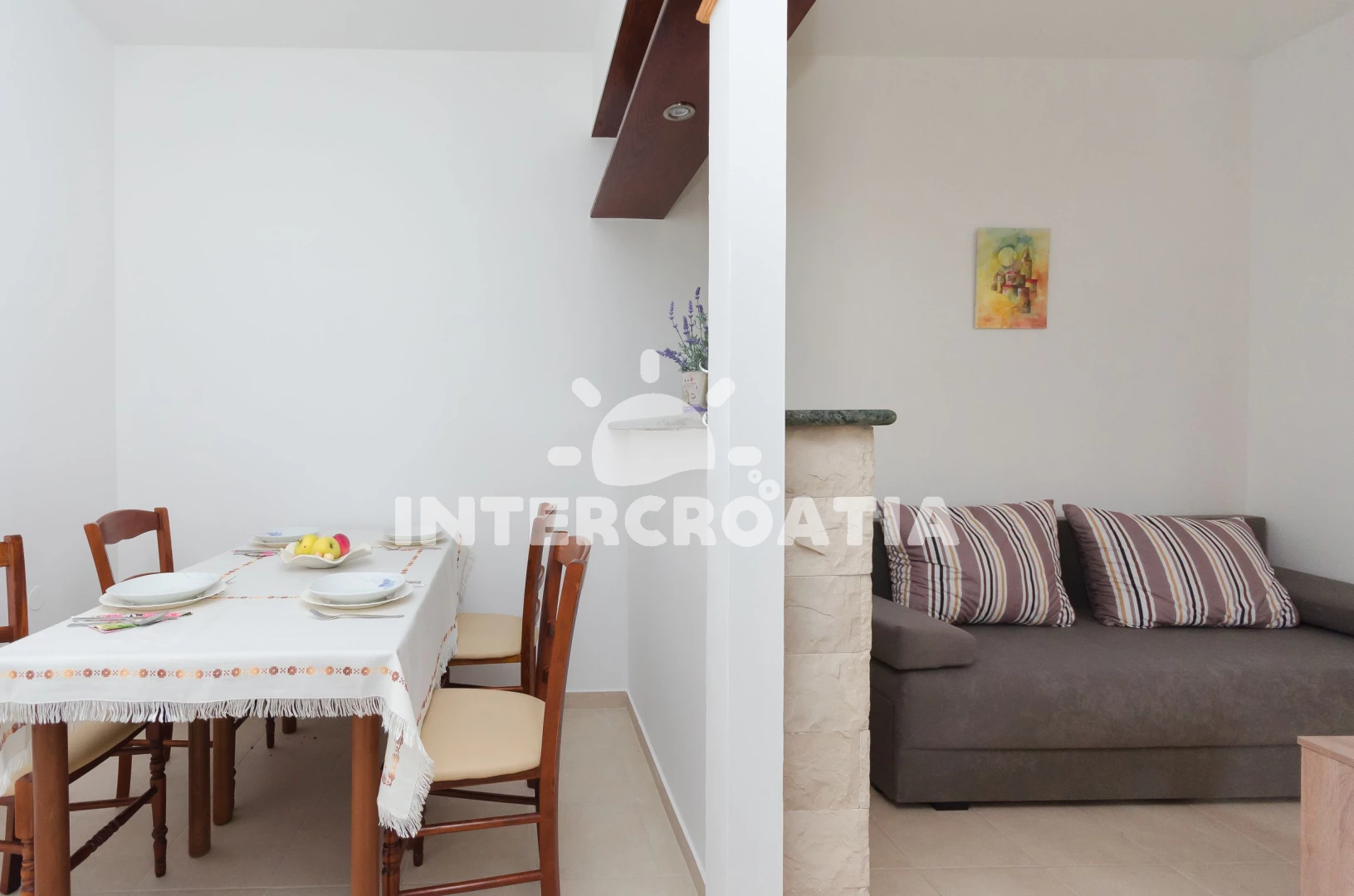Wygodny, spory apartament. Dobrze wyposażony we wszystko co potrzebne. Można było skorzystać z pralki czy wymiany ręczników. Sporo terenu wspólnego wokół apartamentu, mały plac zabaw, trampolina, grill, zadbany ogród pełen zieleni. Dzieci maja gdzie pobiegać. Dużo miejsc parkingowych nawet na większe auta co na Chorwacji zdarza się rzadko. Szybki internet. Na najbliższą plażę spacerkiem może z 10 min. Bardzo uprzejmi i gościnni właściciele. Nie się do czego przyczepić :)