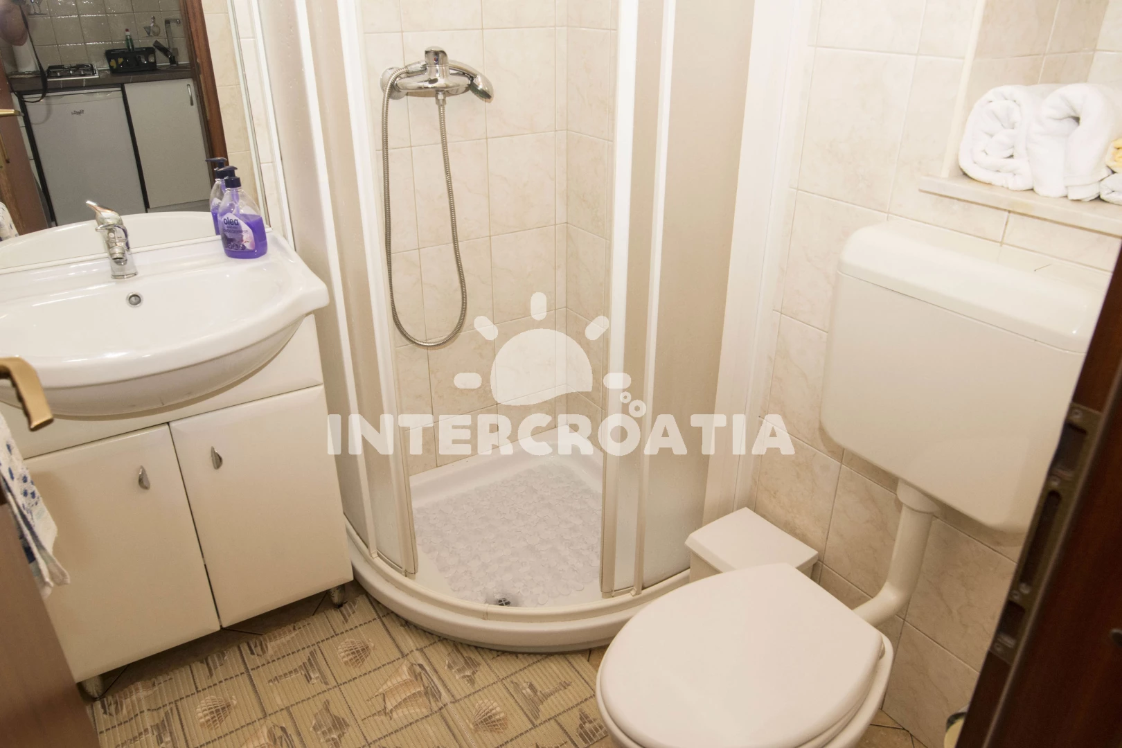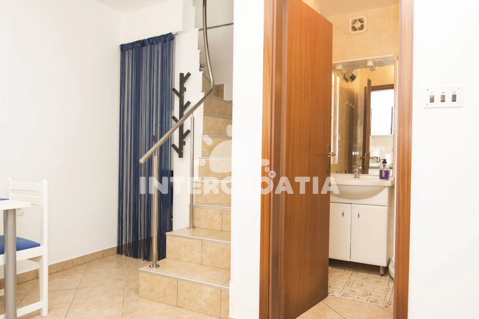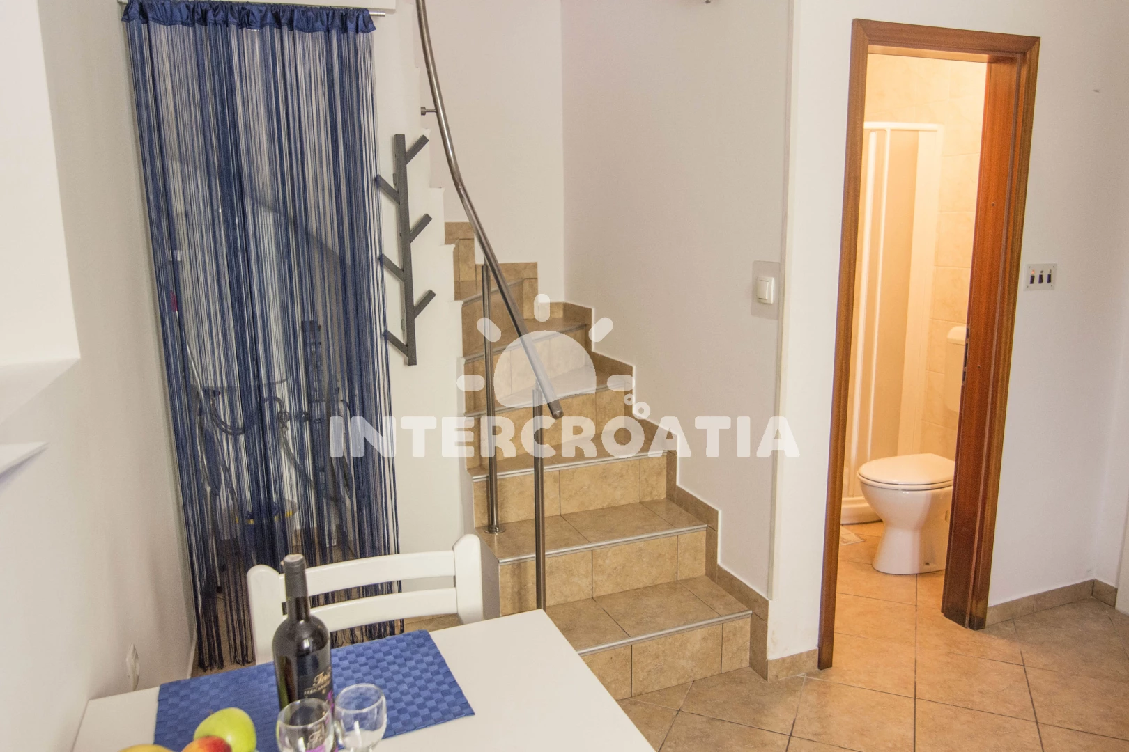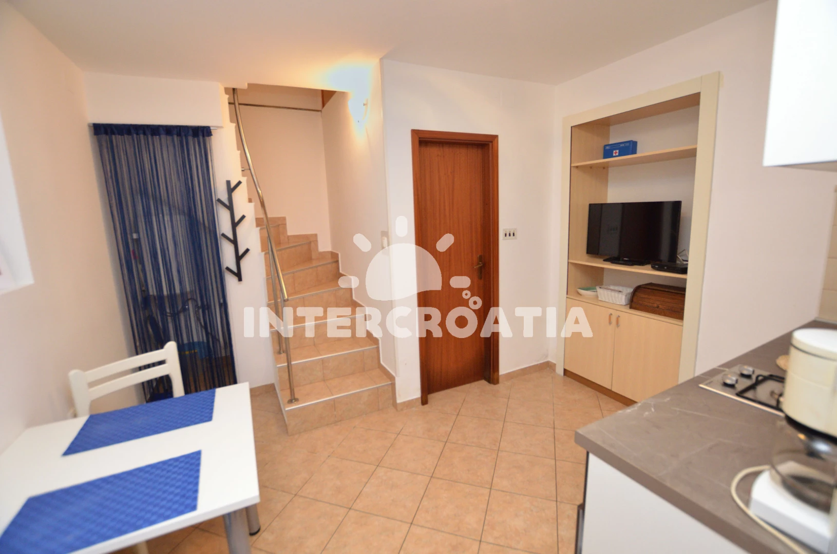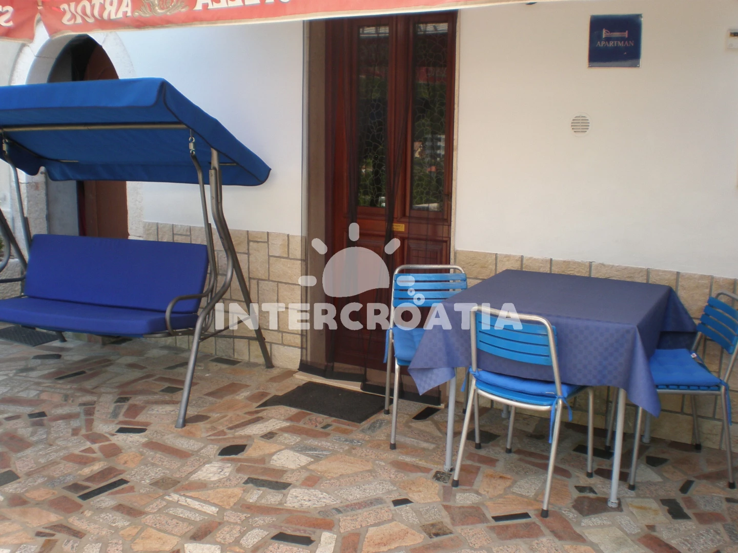 Apartmán se nachází 700 m od moře a pláže. Pláž je skalnatá a oblázková. U objektu je k dispozici společná zahrada s posezením a grilem. Parkování je před domem.