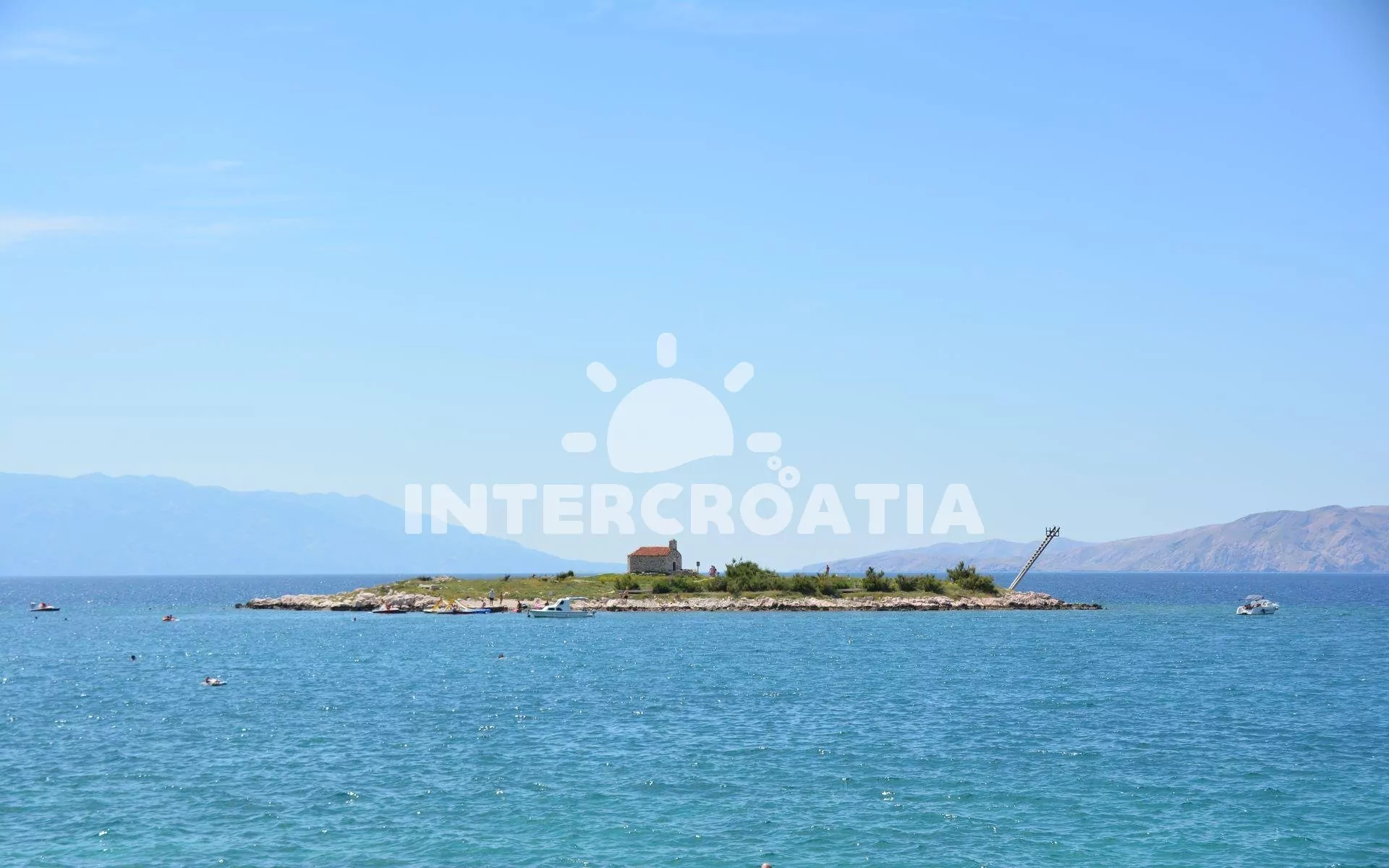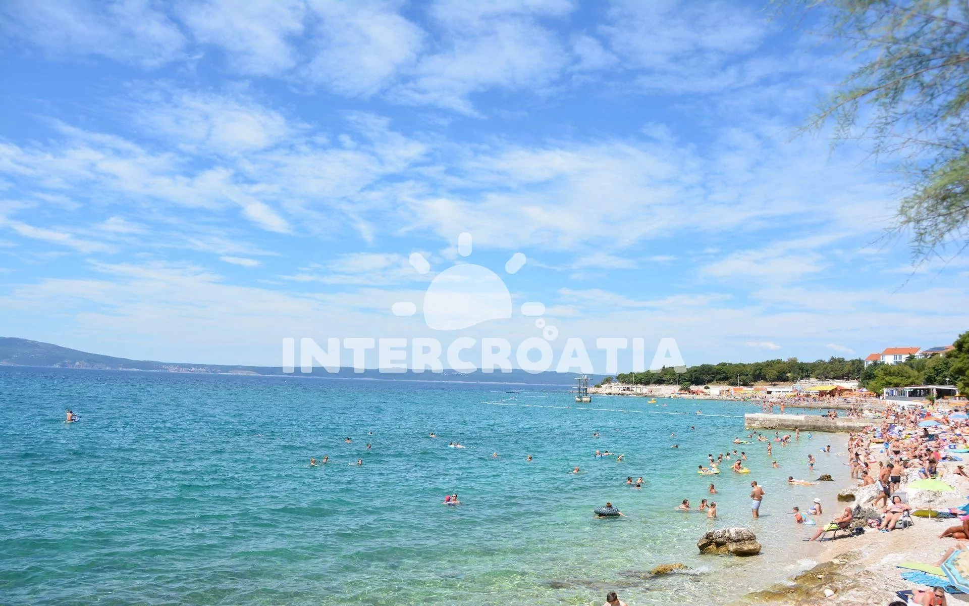 Vzdálenosti: Moře 300 m, pláž (oblázková a betonové desky) 350 m (cesta se schody), pláž 850 m (po cestě, bez schodů), centrum 500 m, market 100 m, pošta 300 m, lékárna 500 m, nemocnice 500 m, restaurace 350 m, muzeum 500 m, směnárna 300 m, banka 500 m, kotviště pro čluny 500 m, potápěčský klub 500 m, půjčovna motorových člunů 500 m, půjčovna kol 500 m, tenisové kurty 500 m, venkovní bazén 500 m, vnitřní bazén 500 m, bar 350 m, čerpací stanice 300 m, veřejná doprava 350 m, trajekt (Valbiska – Krk) 35 km, letiště (Rijeka) 25 km.