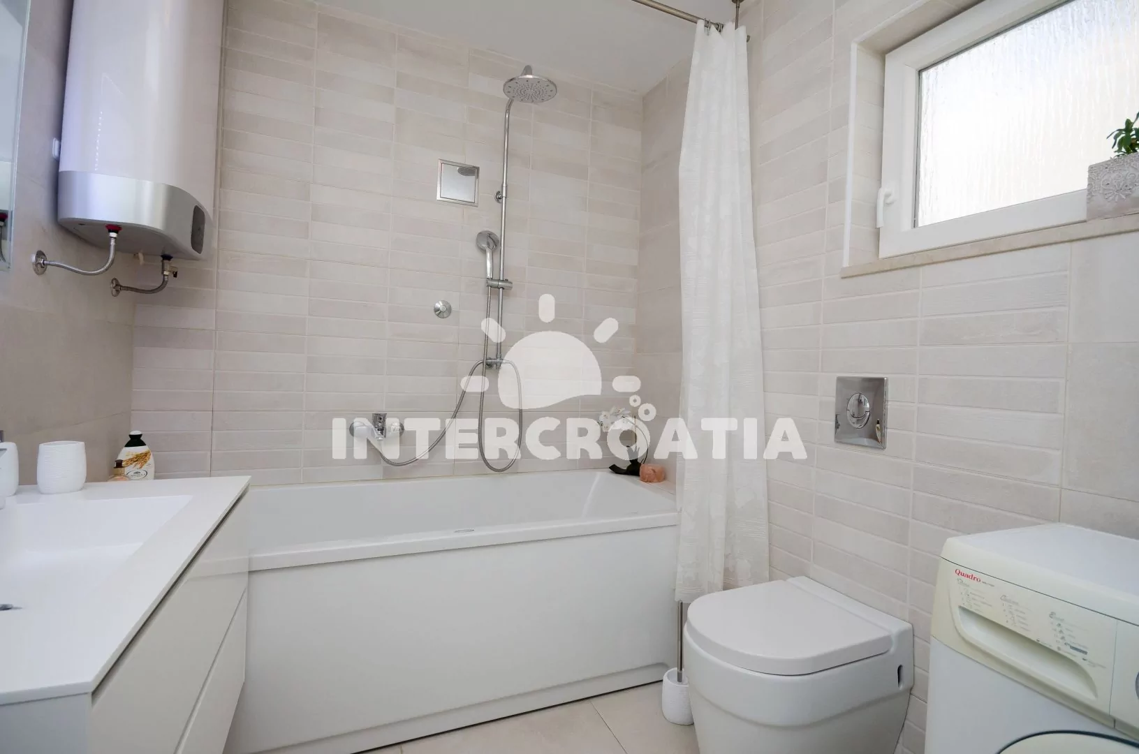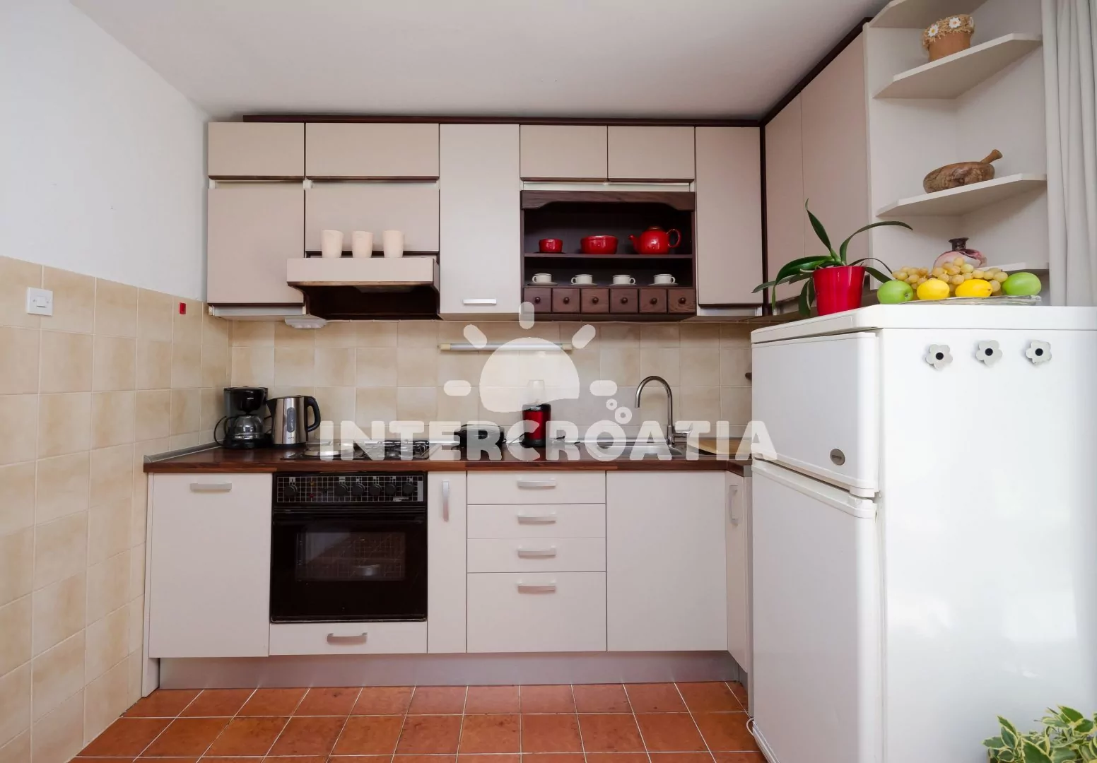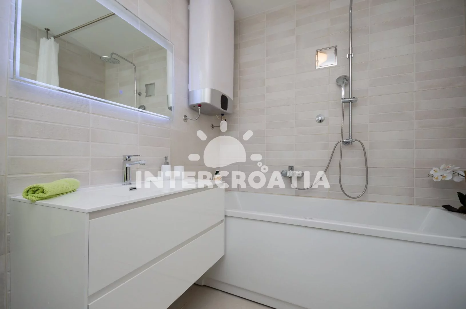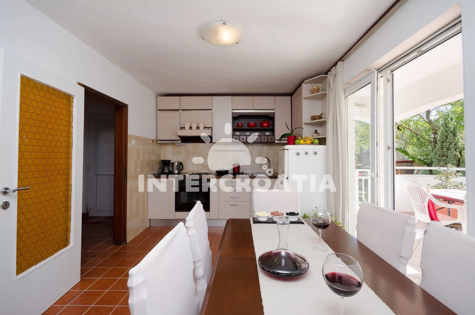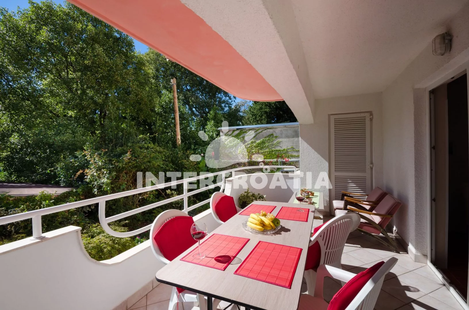 Vzdálenosti: Moře 150 m, pláž (oblázková a betonové desky) 200 m, centrum 400 m, market 100 m, pošta 250 m, lékárna 400 m, nemocnice 100 m, restaurace 150 m, muzeum 400 m, směnárna 200 m, banka 400 m, potápěčský klub 200 m, půjčovna motorových člunů 400 m, tenisové kurty 150 m, minigolf 200 m, venkovní bazén 200 m, vnitřní bazén 200 m, diskotéka 400 m, bar 150 m, čerpací stanice 200 m, dopravní silnice 60 m, veřejná doprava 400 m, trajekt (Rijeka) 45 km, letiště (Rijeka) 20 km.