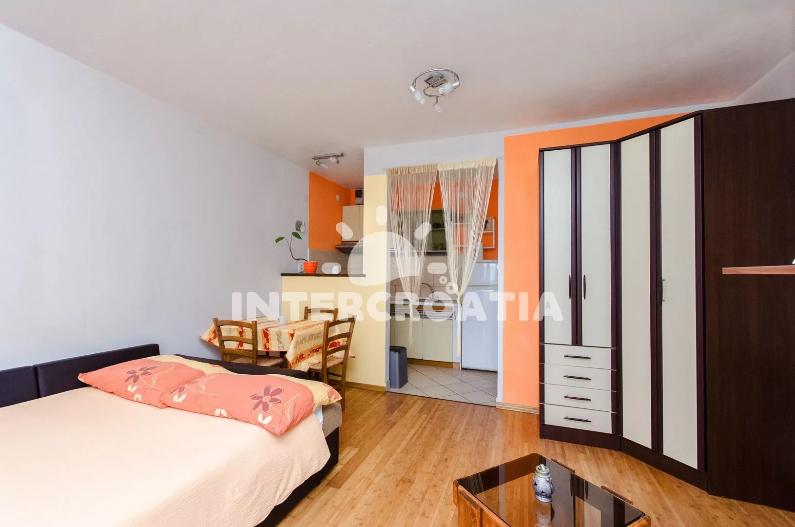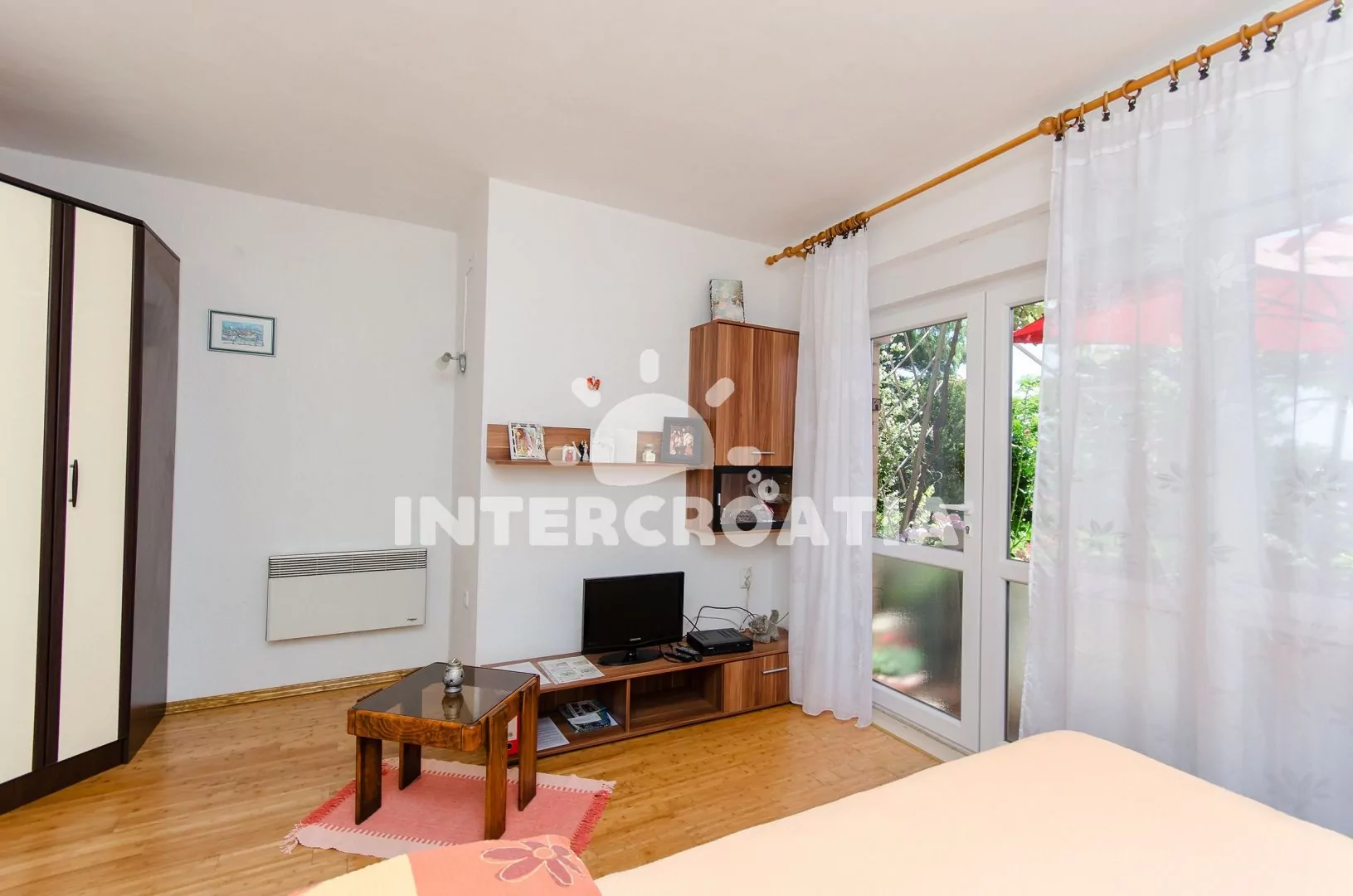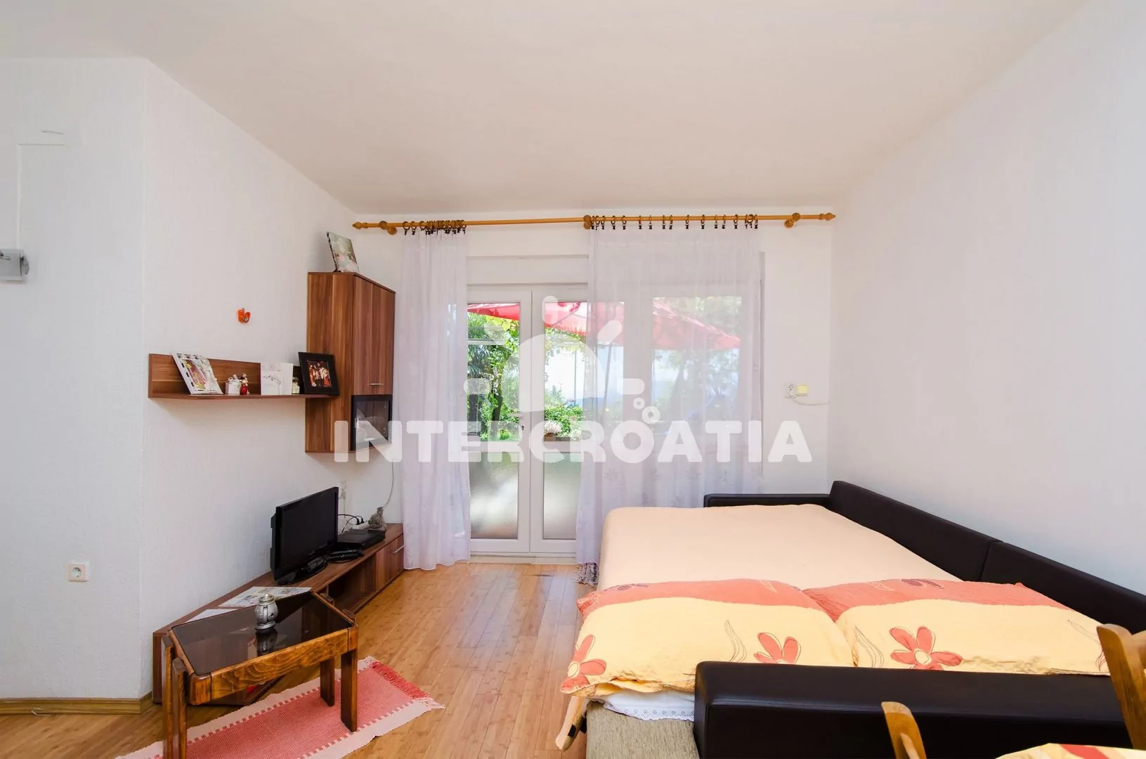 Apartmán typu Studio pro 2 osoby se nachází v přízemí domu. Apartmán s terasou, venkovním posezením, výhledem na moře a do zahrady. Kuchyňská linka je vybavena sporákem, digestoří, troubou, rychlovarnou konvicí, kávovarem, toustovačem, nádobím a lednicí s mrazákem. Obývací část s jídelním stolem pro 3 osoby, televizí se satelitním programem, jedním dvoulůžkem, klimatizací a vstupem na terasu, Koupelna se sprchovým koutem, umyvadlem a wc. Hostům je k dispozici parkování u objektu zdarma.