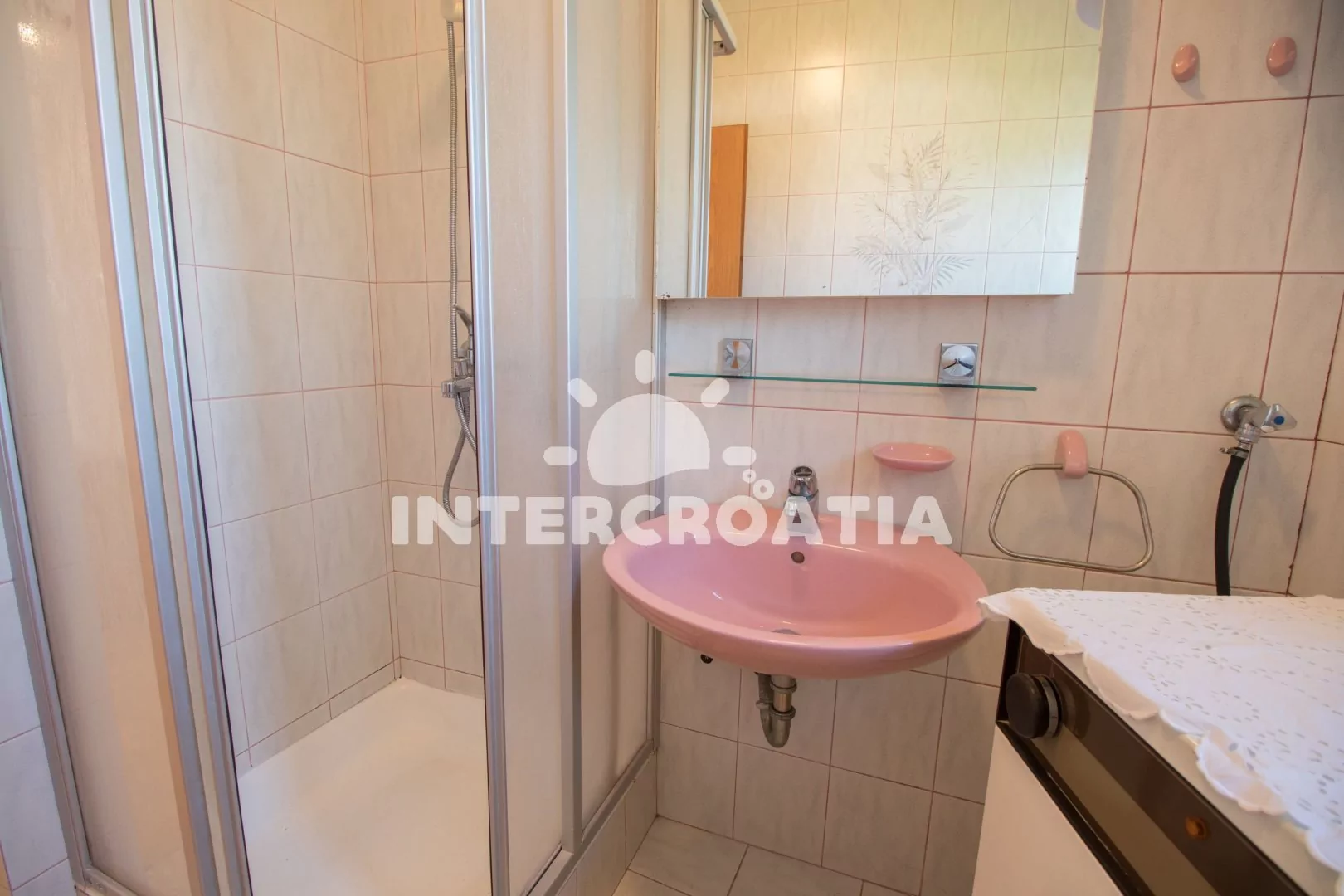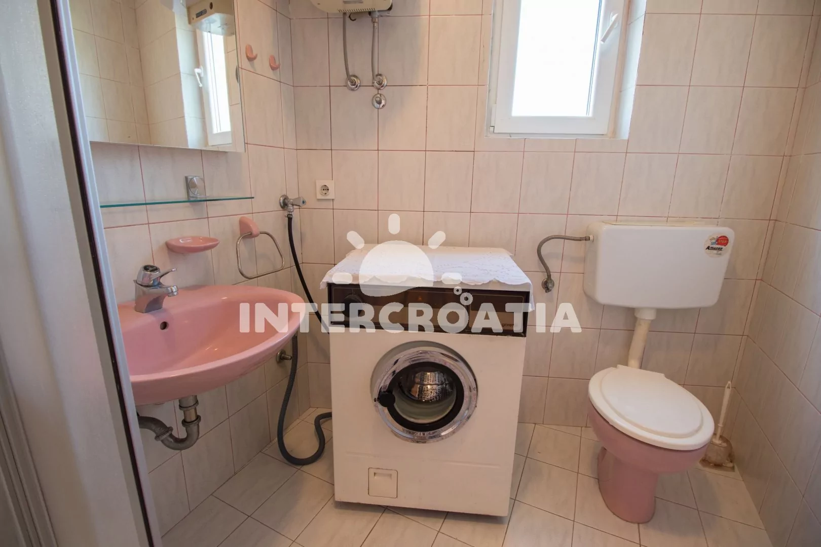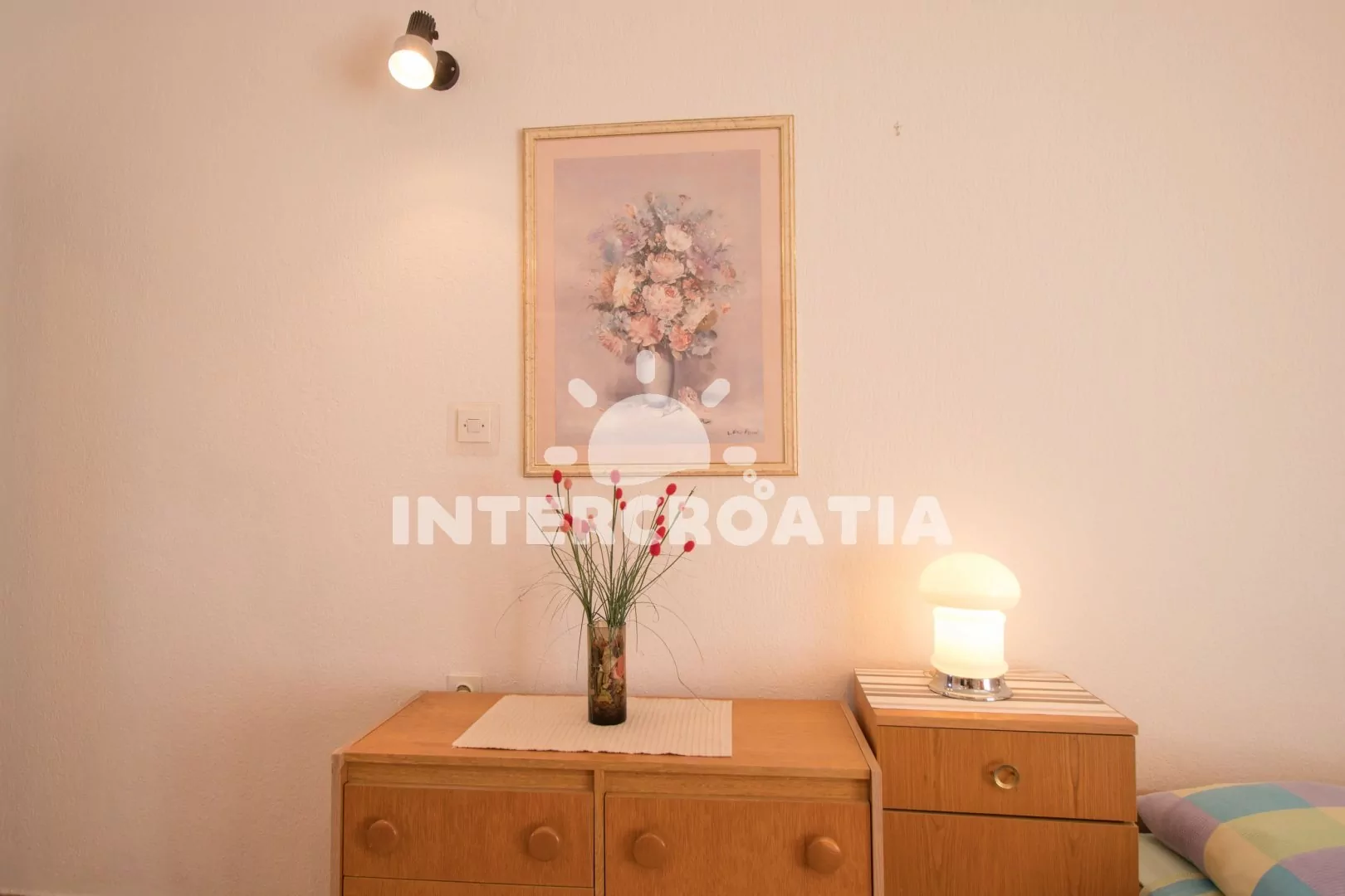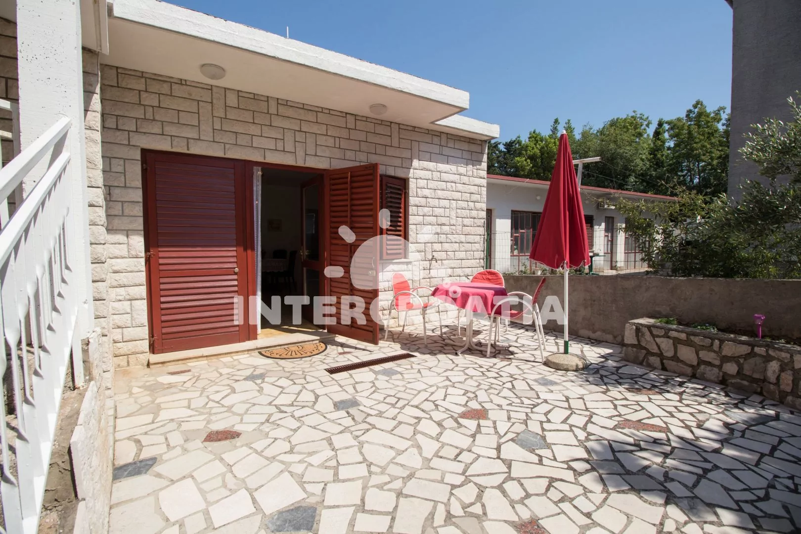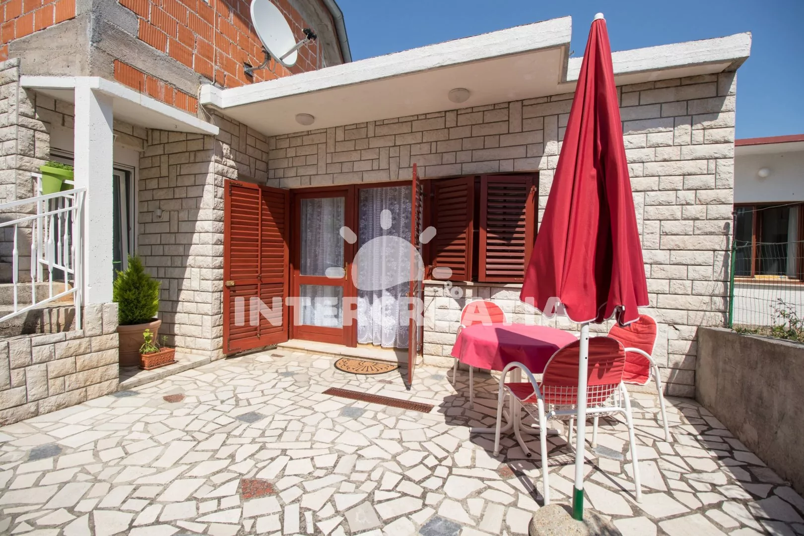 Apartmán typu studio s terasou, nachází se v přízemí domu a je vhodný pro 3 osoby. Kuchyňský kout je vybavený sporákem, troubou, kávovarem, mikrovlnnou troubou, rychlovarnou konvicí, nádobím a lednicí s mrazákem. Obývací část s jídelním stolem pro 4 osoby, televizí se satelitním programem, jedním dvoulůžkem, jedním jednolůžkem, klimatizací a vstupem na terasu. Koupelna se sprchovým koutem, umyvadlem, pračkou a wc. Hostům je k dispozici parkování u objektu zdarma.