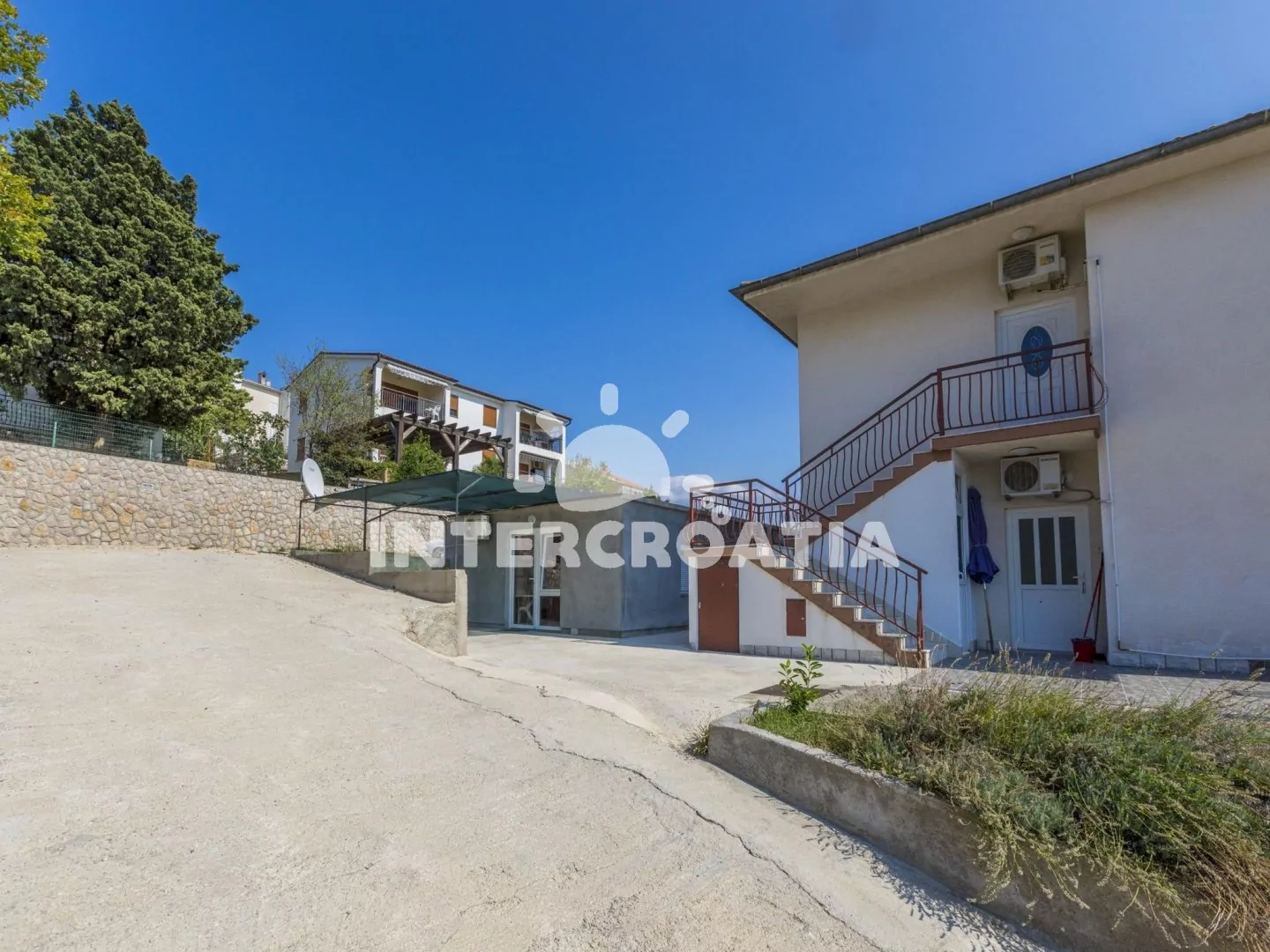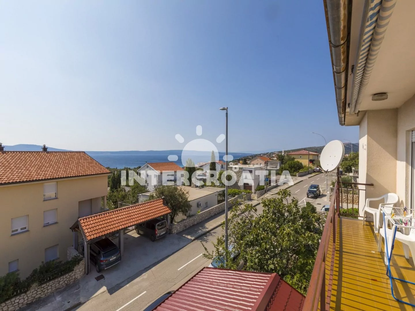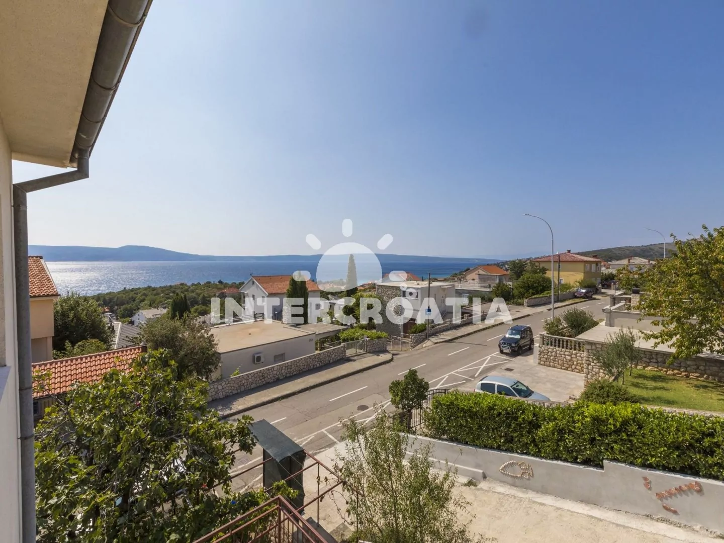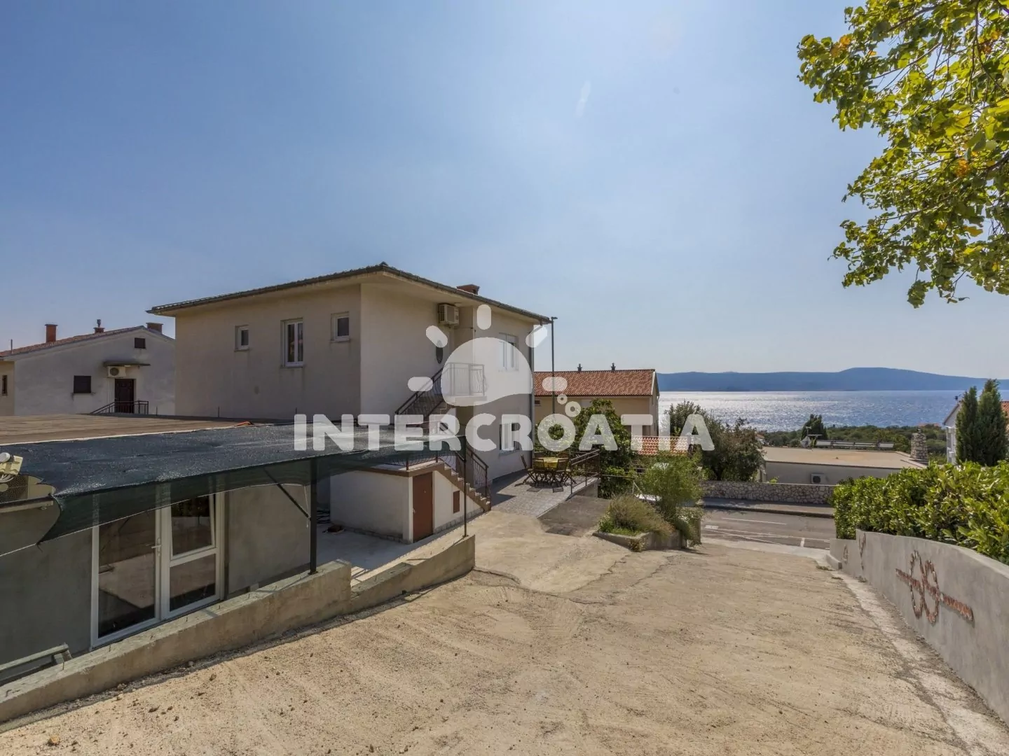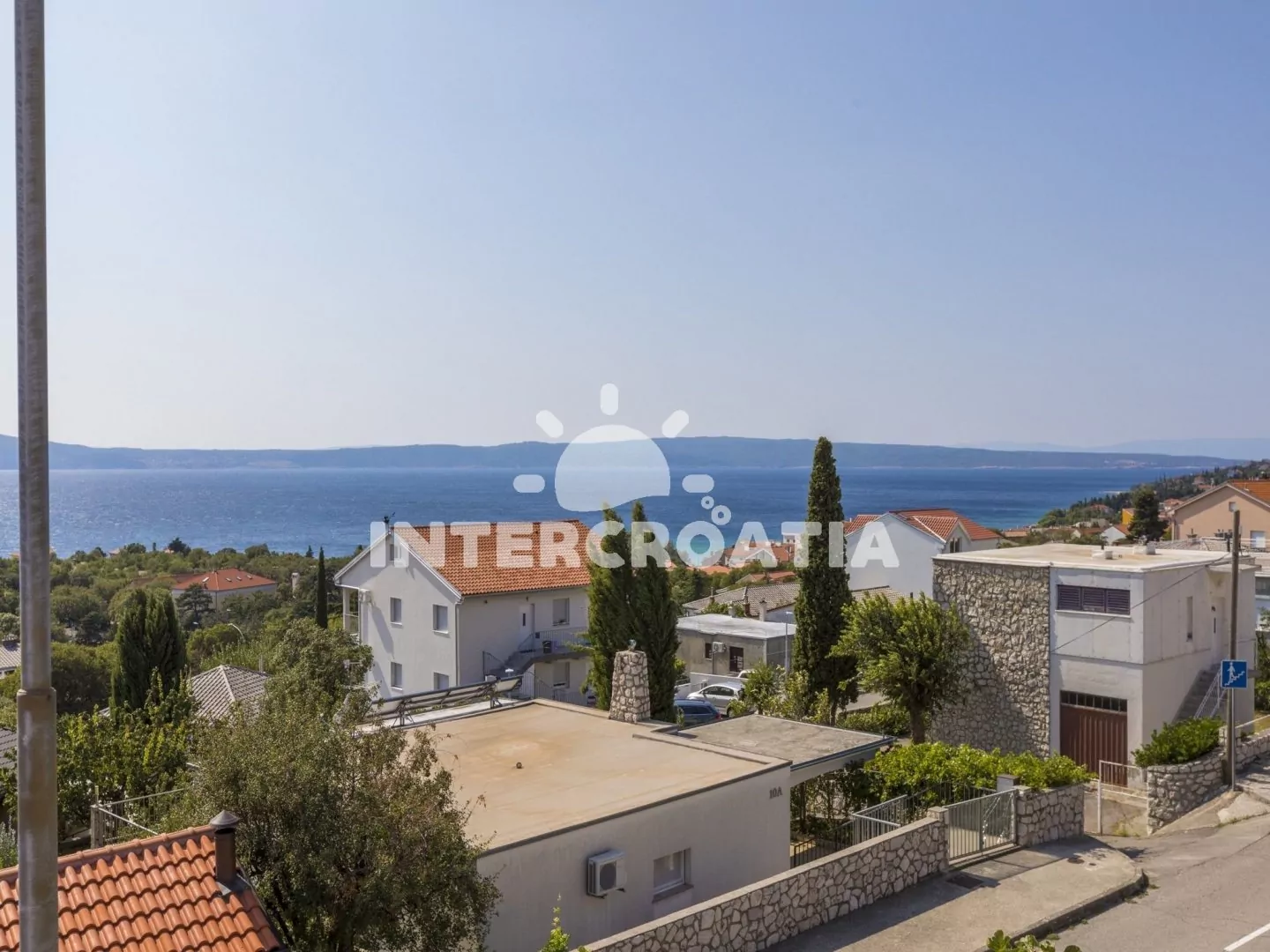 Velmi dobře umístěný dům s výhledem na moře a dobrou vzdáleností jak do centra tak k oblázkové pláži. Parkovací místa u domu.