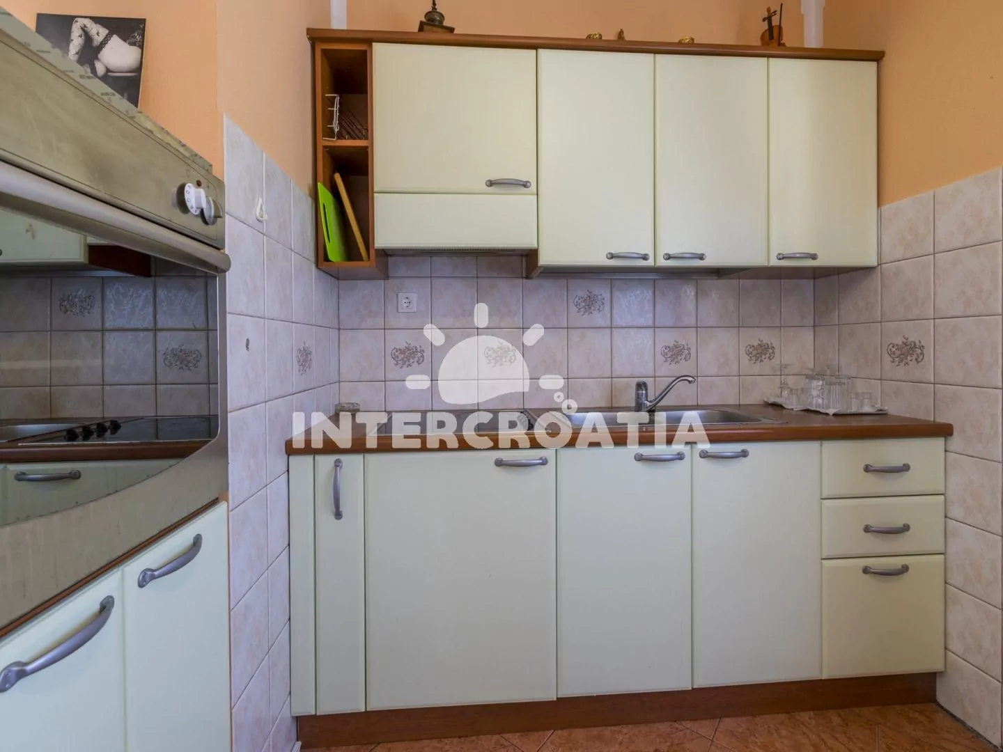 Apartmán (100 m2) v druhém patře domu s balkonem a výhledem na moře je vhodný pro 4 - 6 osob. Obývací pokoj je spojený s kuchyní. Kuchyňská linka je vybavena varnou deskou, digestoří, troubou,…