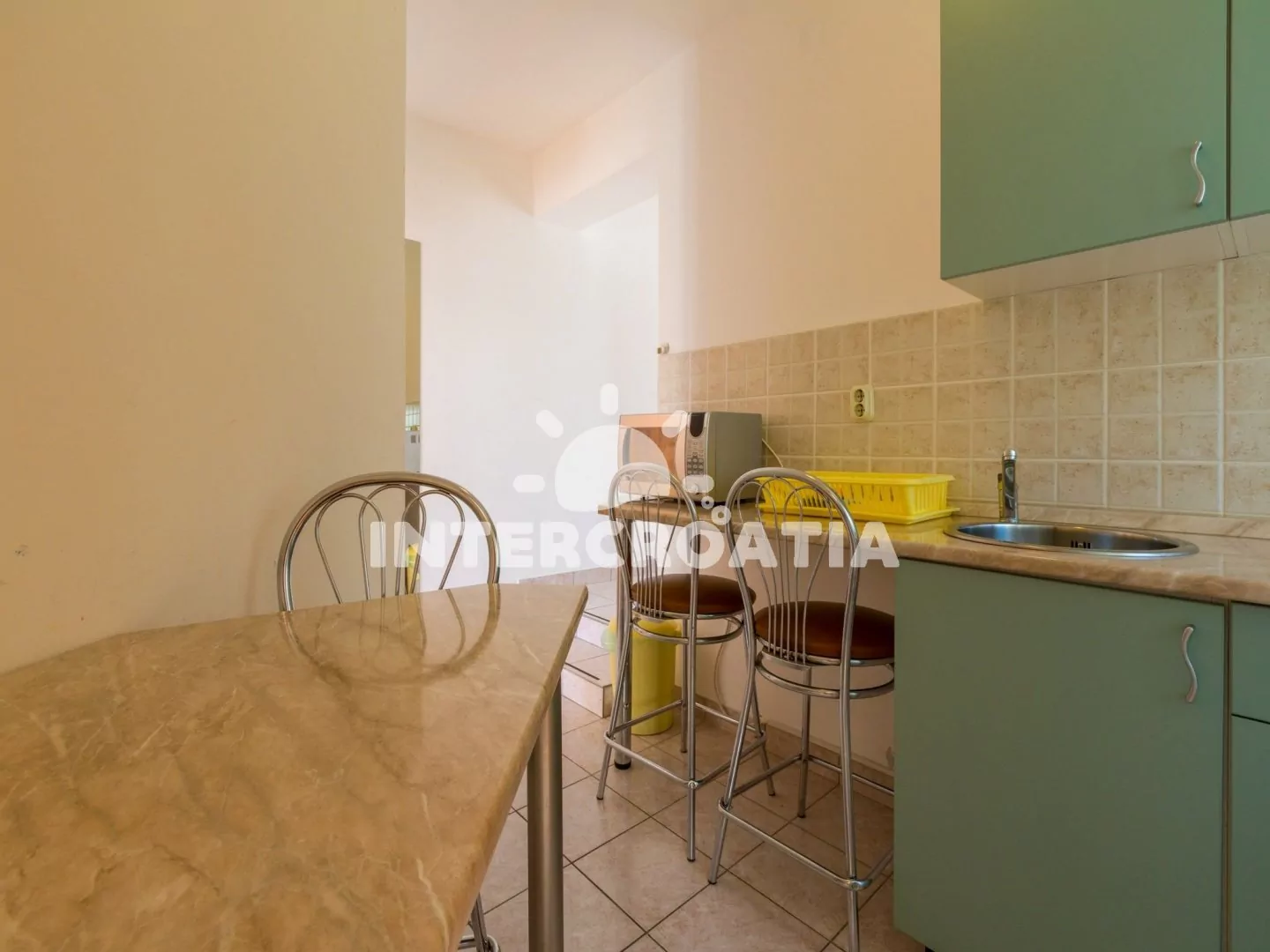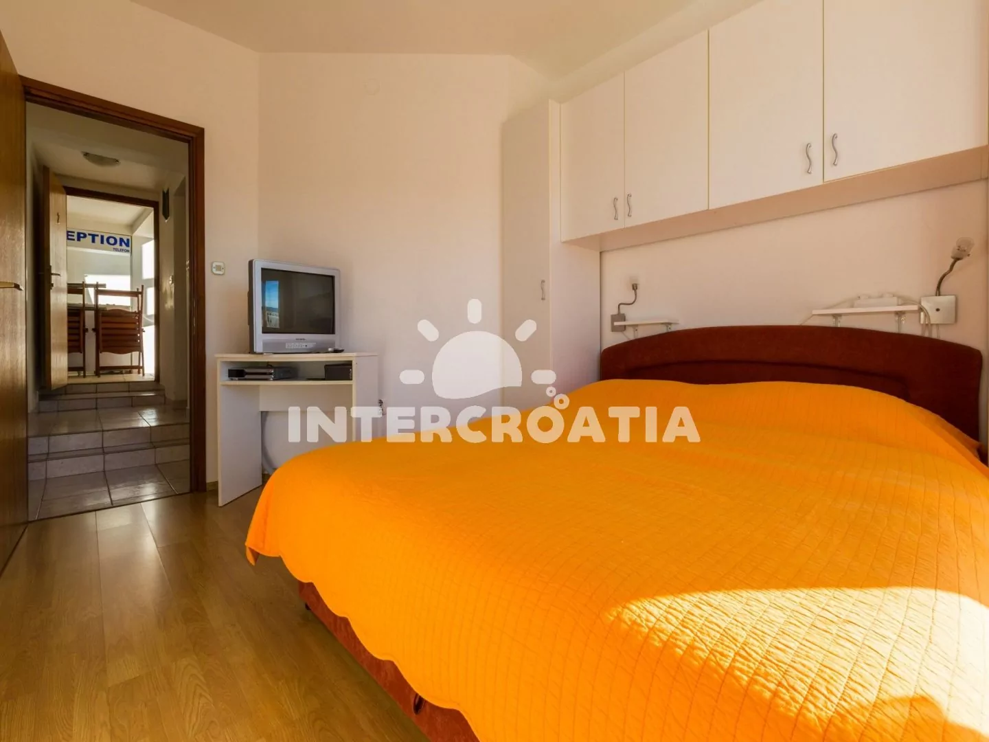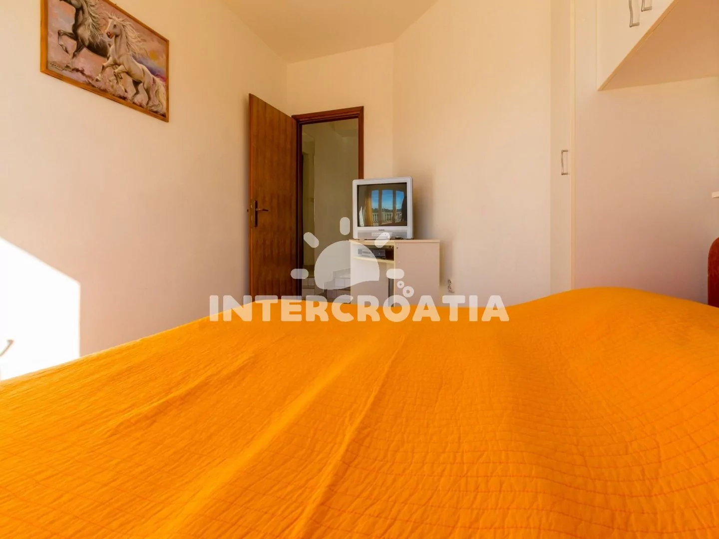 Apartmán s výhledem na moře a sdílenou terasou se nachází v přízemí domu. Kuchyňský kout je vybavený dvouplotýnkovým vařičem, mikrovlnnou troubou, rychlovarnou konvicí, kávovarem, nádobím a lednicí s mrazákem. Dále jídelní stůl a klimatizace. Ložnice s dvoulůžkem a vstupem na terasu. Druhá ložnice s dvěma jednolůžky. Koupelna se sprchovým koutem, umyvadlem a wc. Parkovací místa 150 - 300 m od domu.