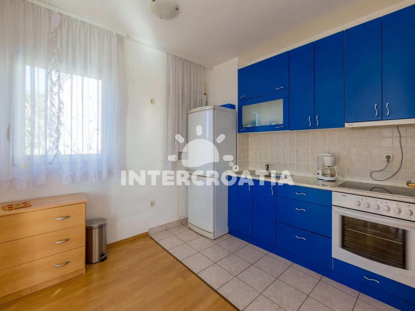 Apartmán (61 m2) s výhledem na moře a sdílenou lodžií se nachází v 1. patře domu. Kuchyňská linka je vybavena varnou deskou, digestoří, troubou, rychlovarnou konvicí, kávovarem, nádobím a lednicí s…