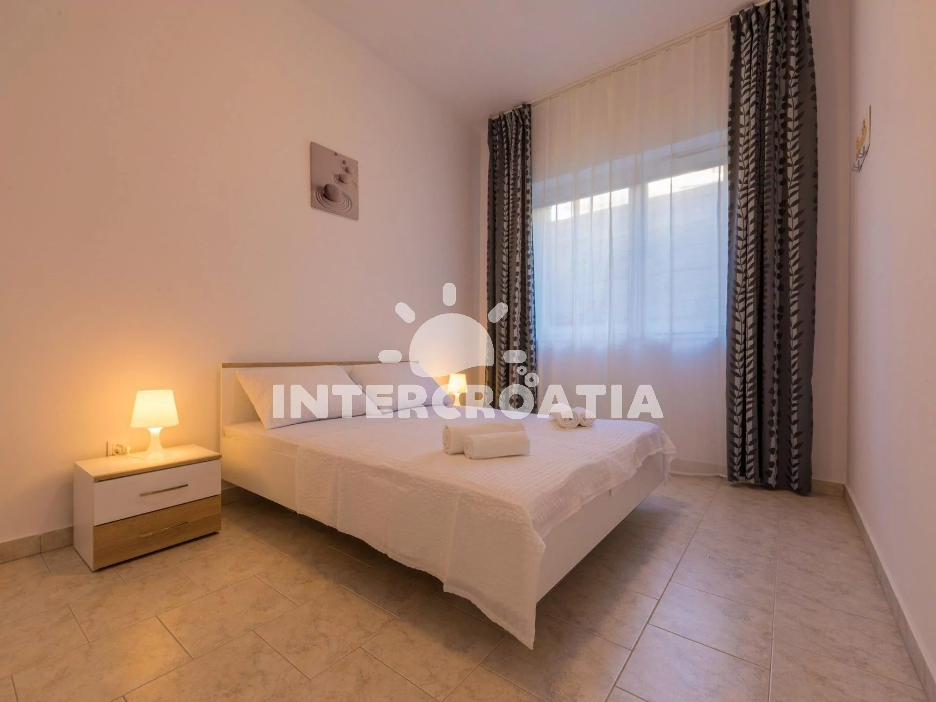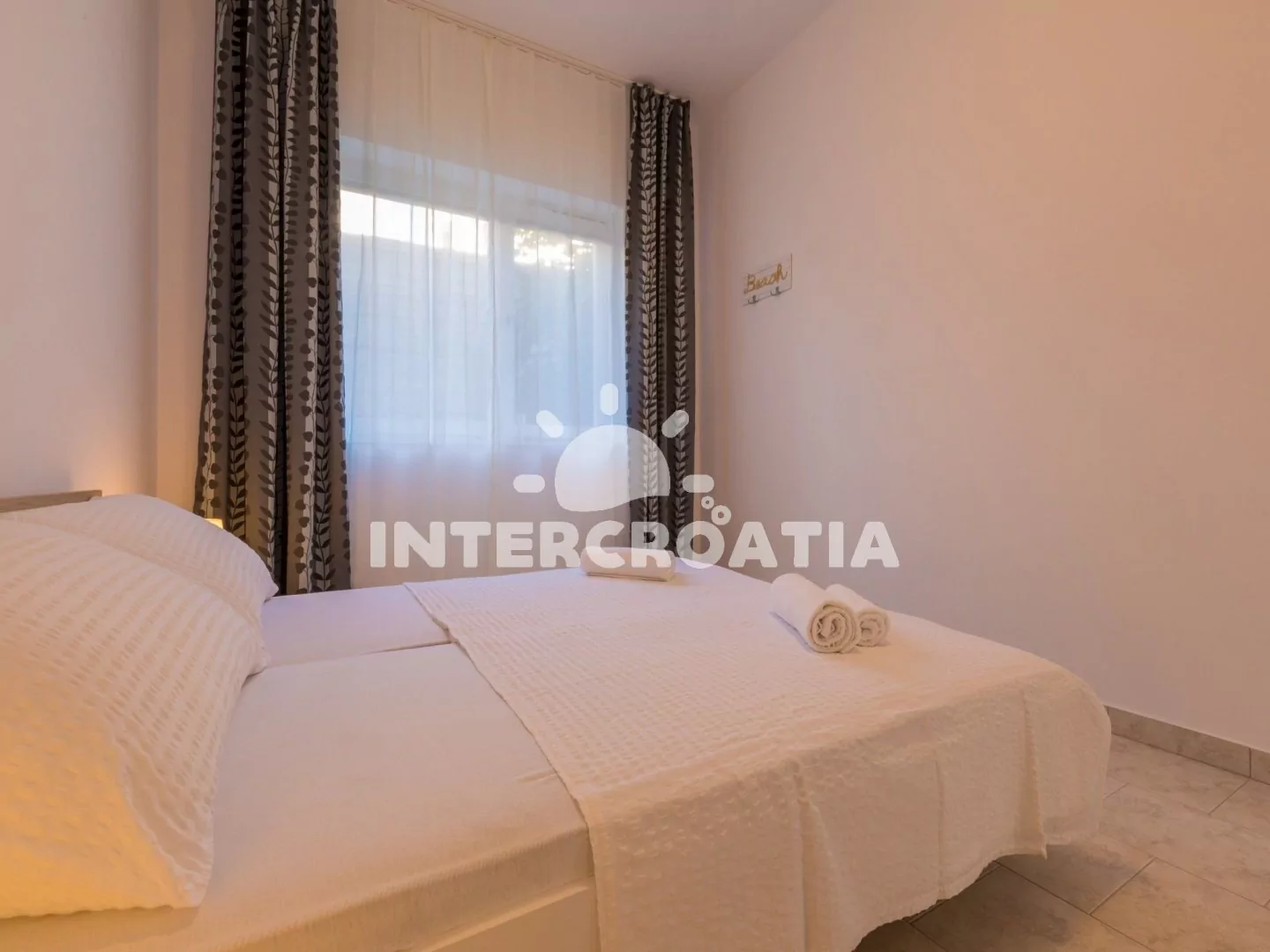 Moderně zařízený dům s dvěma apartmány se nachází v docházkové vzdálenosti od moře, u domu pozemek s parkovacími místy. Apartmány s lodžiemi a venkovním posezením.