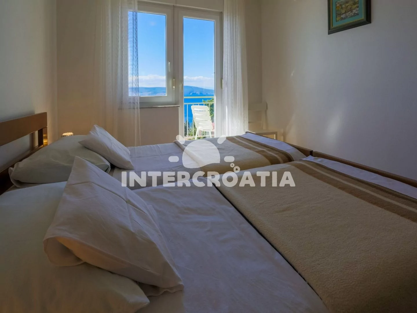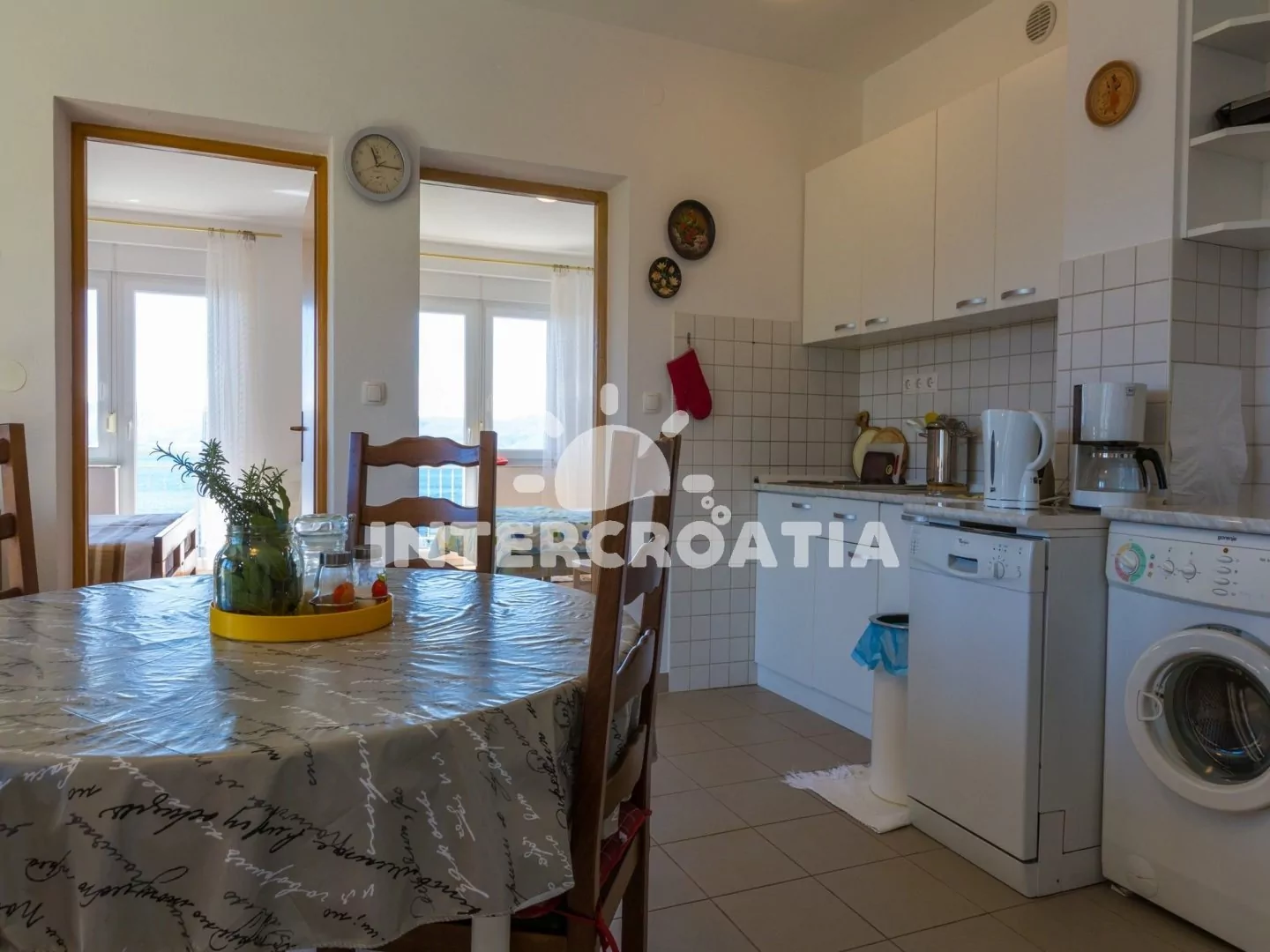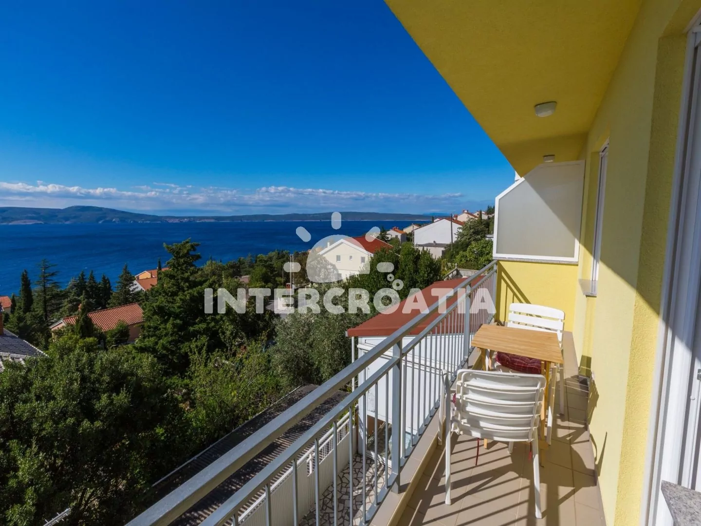 Apartmán (65 m2) s balkonem a výhledem na moře se nachází v 2. patře domu a je vhodný pro 4 až 5 osob. Obývací pokoj je spojený s kuchyní. Kuchyňská linka je vybavena varnou deskou, kávovarem, myčkou…