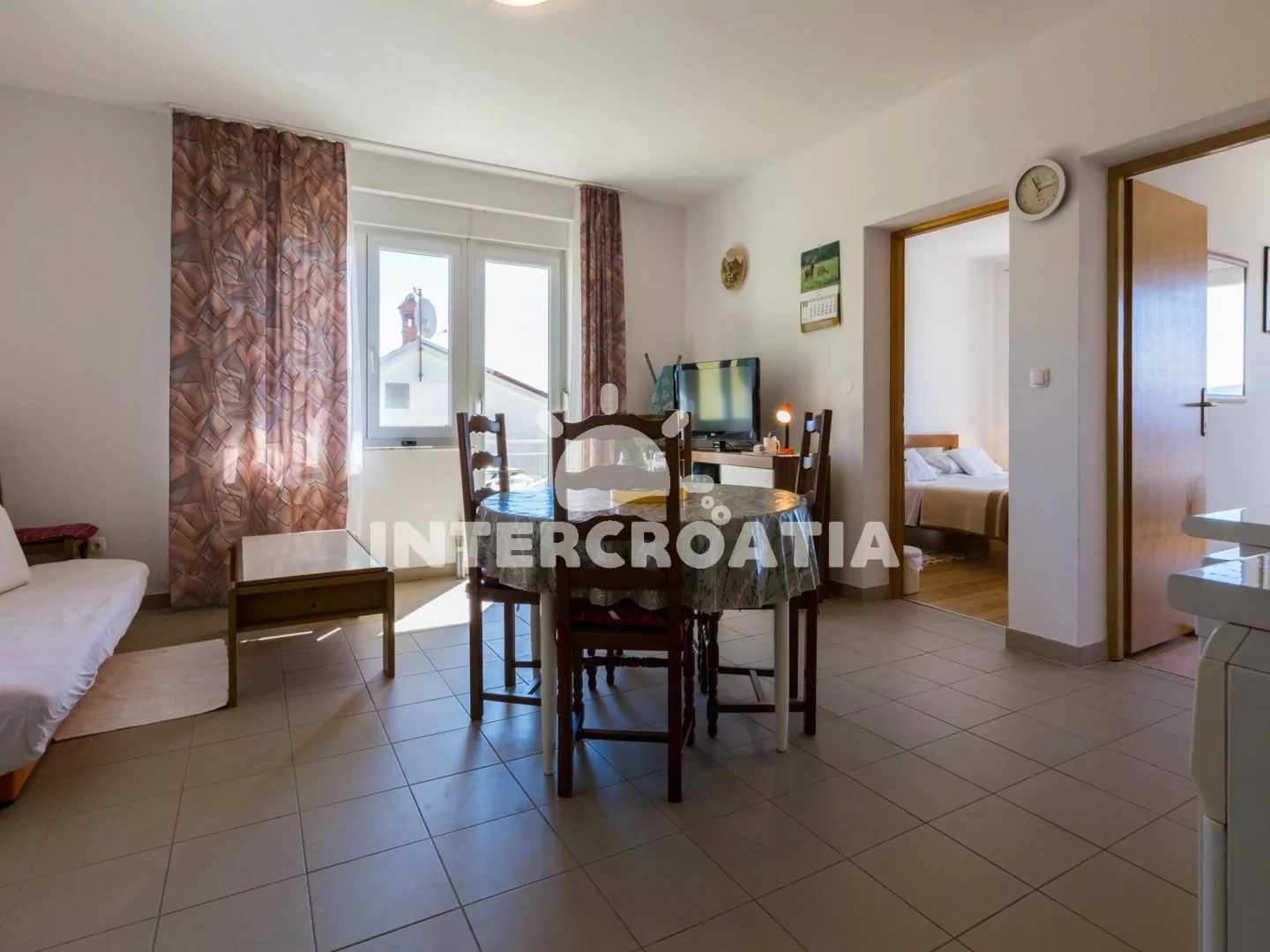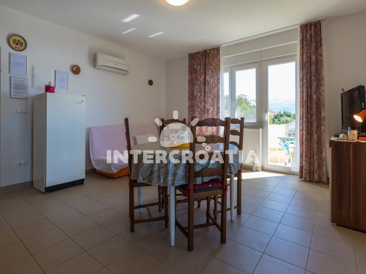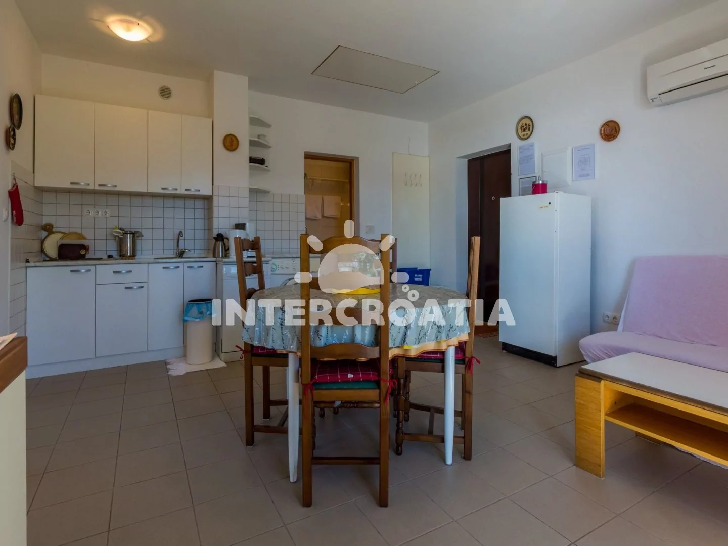Apartmán (65 m2) s balkonem a výhledem na moře se nachází v 2. patře domu a je vhodný pro 4 až 5 osob. Obývací pokoj je spojený s kuchyní. Kuchyňská linka je vybavena varnou deskou, kávovarem, myčkou…