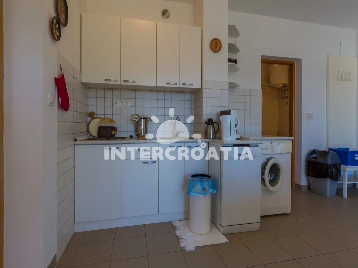 Vzdálenosti: Moře a pláž 300 m, lékárna, banka a pošta 900 m, supermarket 150 m, restaurace 300 m, čerpací stanice 1,6 km, ambulance 1,8 km, přístav 850 m, směnárna 1,8 km, půjčovna motorových člunů 850 m, centrum města 1,8 km, letiště 40 km.