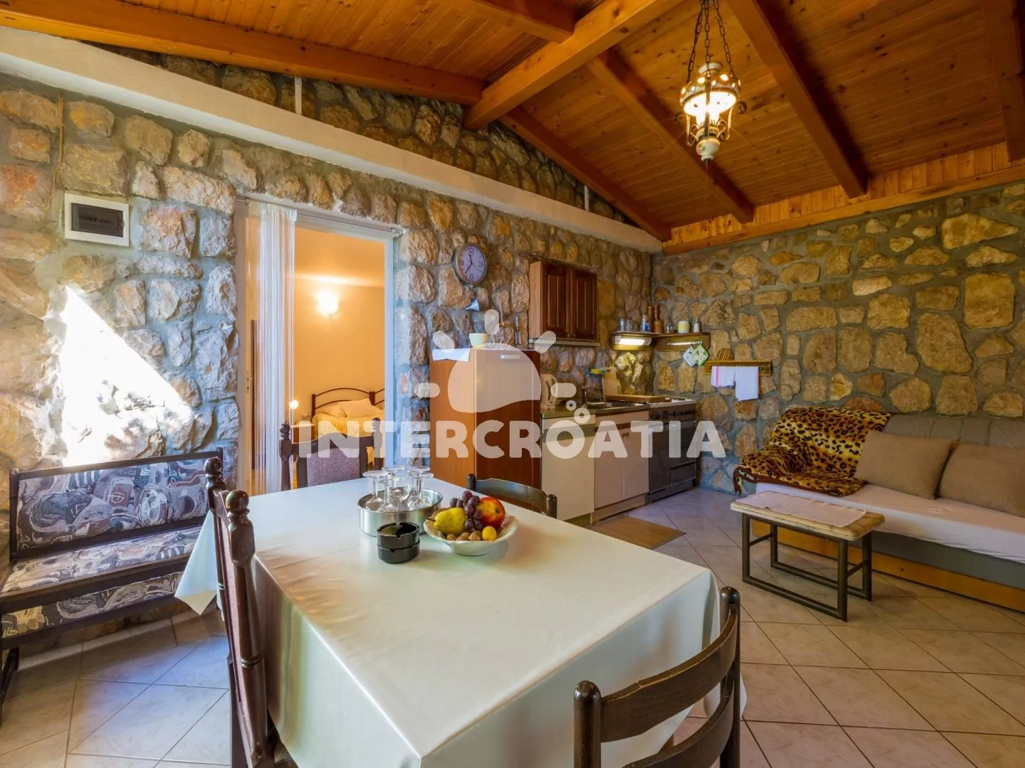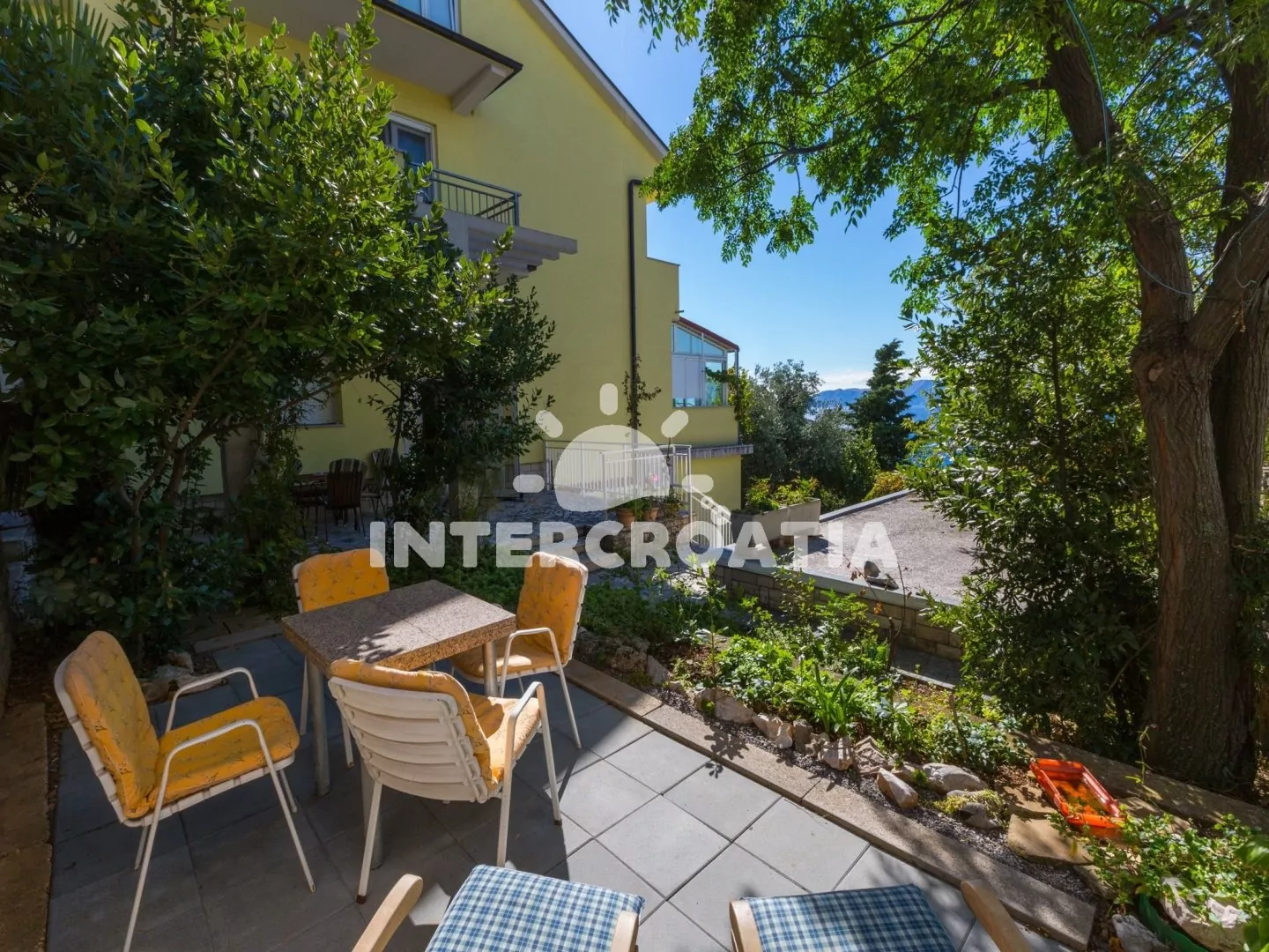 Dobře situovaný apartmánový dům s výhledem na moře a Ostrov Krk. U domu společná terasa s venkovním posezením, zděným grilem a pozemkem s parkovacími místy.