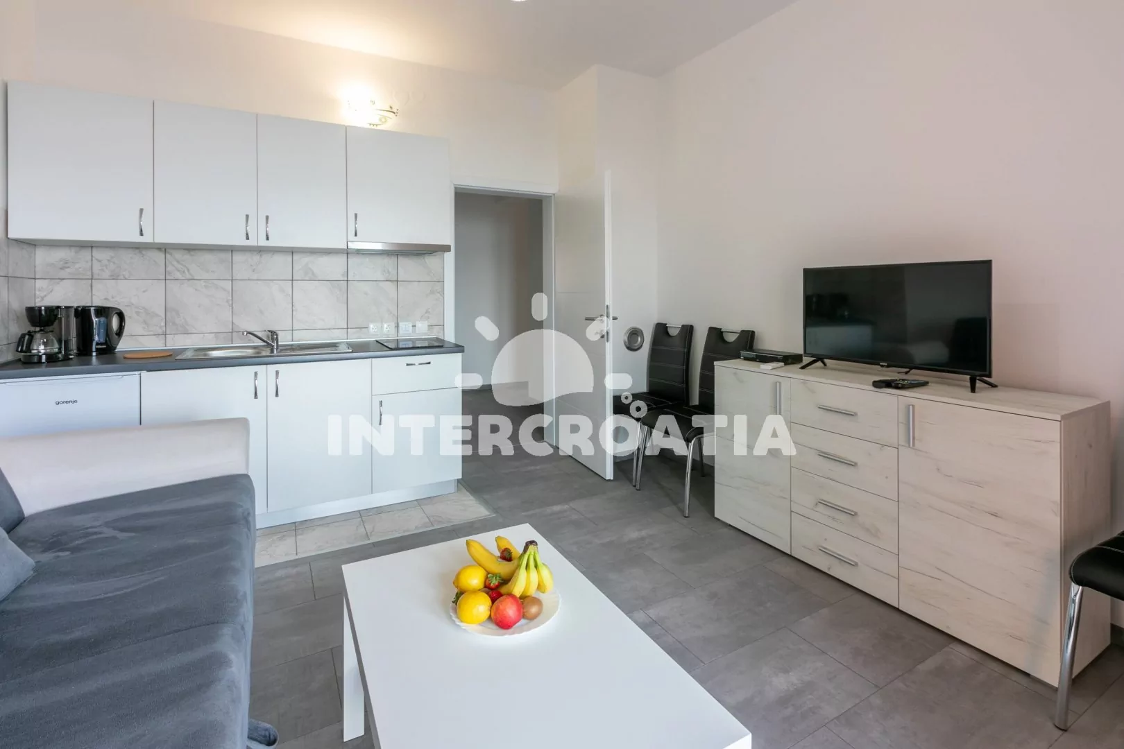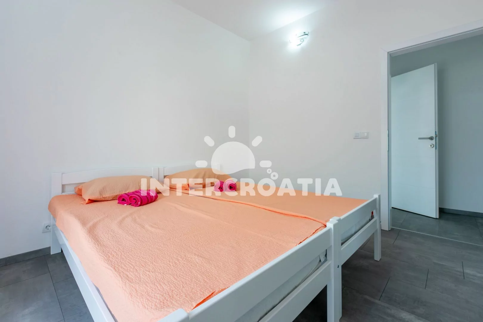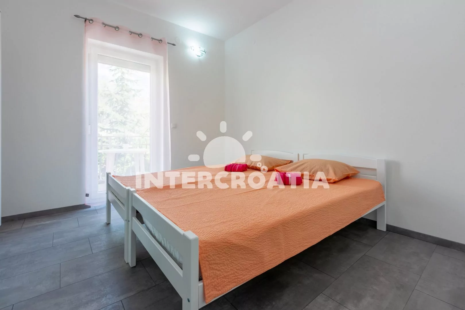 Vzdálenosti: Moře a oblázková-betonová pláž 750 m, restaurace 350 m, centrum 600 m, lékárna, supermarket, směnárna 650 m, čerpací stanice, bar 700 m, přístav 1,2 km, diskotéka 13 km, letiště 35 km.