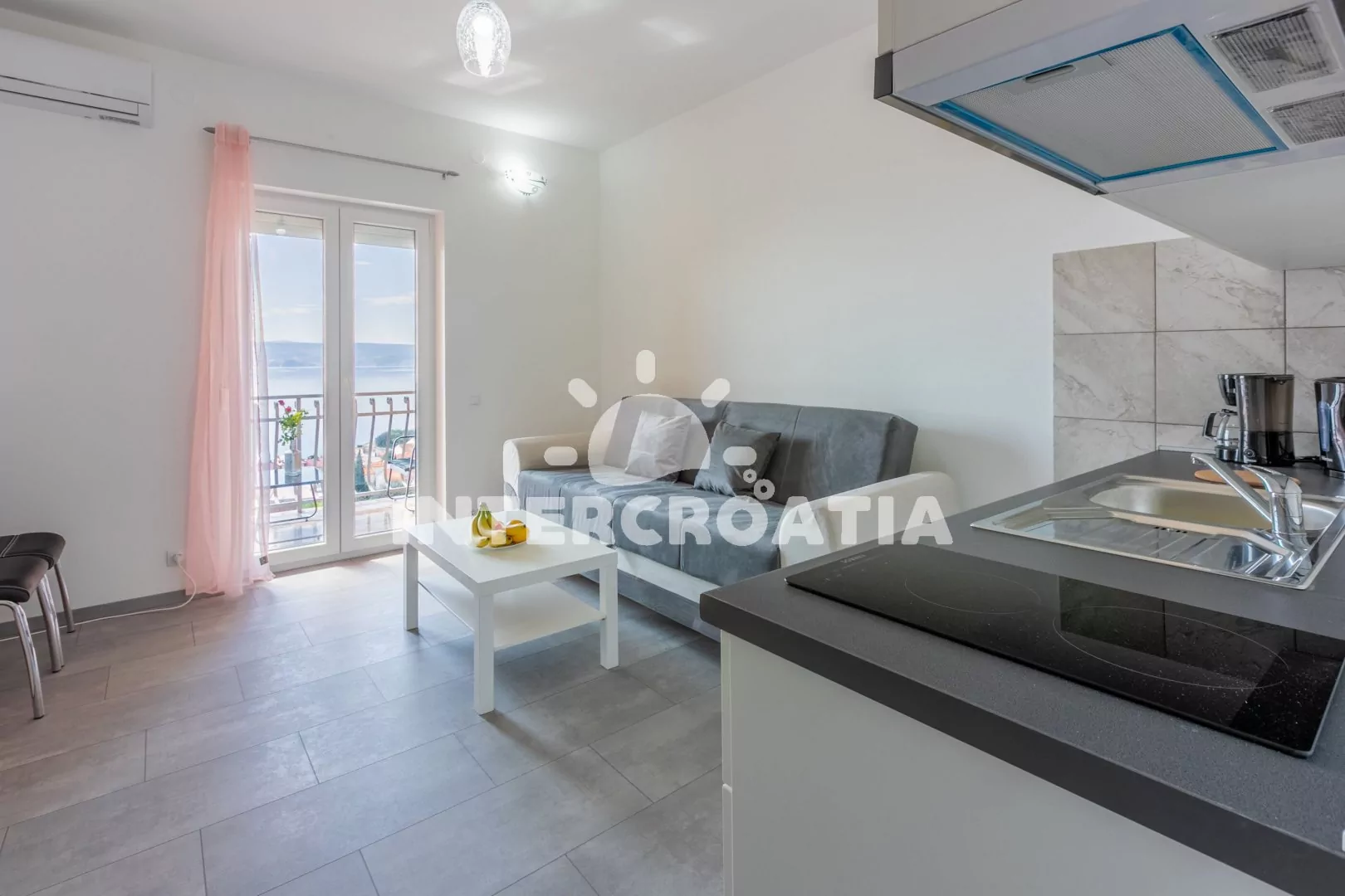 Novi Vinodolski je menší letovisko, které se rozkládá na Kvarneru, 42 km od Rijeky. Apartmánový dům má velkou terasu a krásný výhled na moře. Docházková vzdálenost k moři a oblázkové pláži, kterou doplňují betonové plochy, je 750 m.