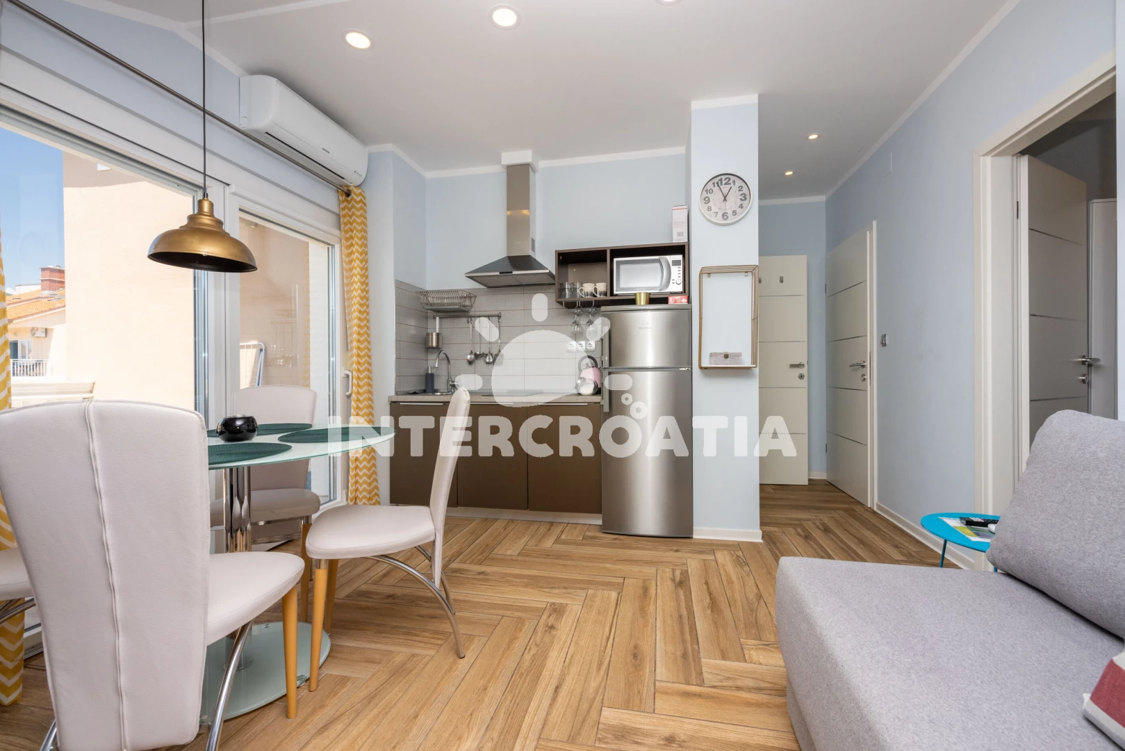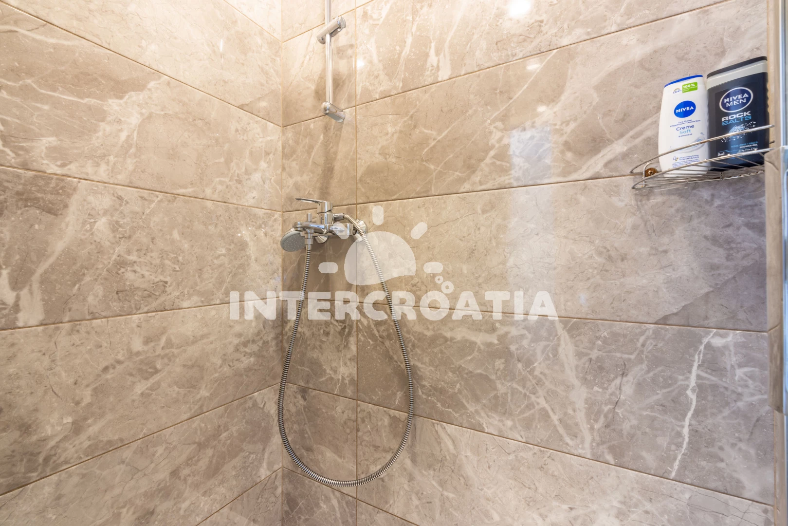 Apartmán (32 m2) s terasou, venkovním posezením a výhledem na moře se nachází ve 2. patře vily. Apartmán má 1 ložnici a je vhodný pro 2 až 4 osoby. Obývací pokoj je spojený s kuchyní. Kuchyňská linka…