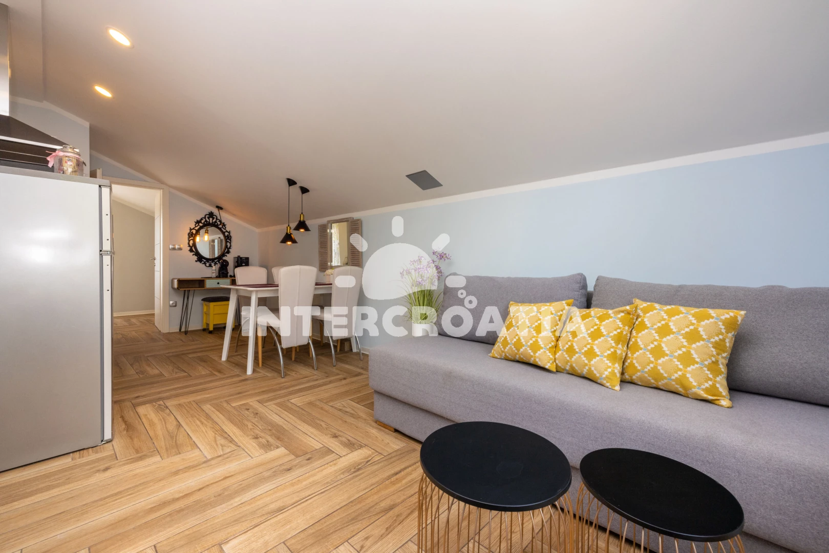 Vzdálenosti: Moře a oblázková pláž 900 m, centrum, restaurace, bar, směnárna, supermarket, lékárna, banka 250 m, ambulance, čerpací stanice, veřejná doprava 300 m, pošta 350 m, přístav, půjčovna motorových člunů 600 m, letiště (Rijeka) 35 km.