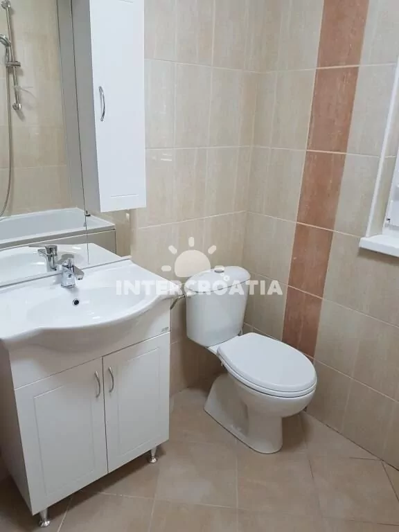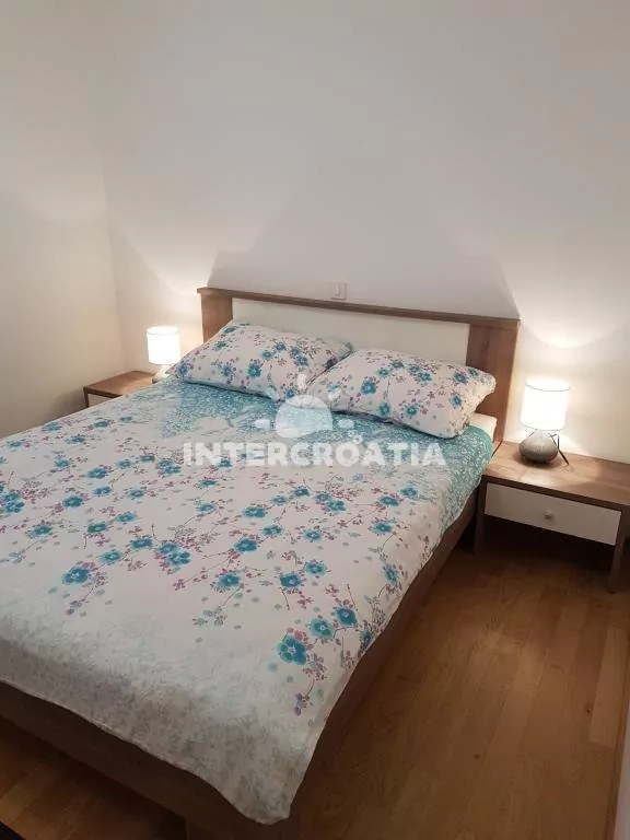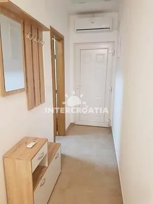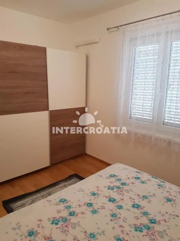 Apartmán (47 m2) s terasou, venkovním posezením a částečným výhledem na moře se nachází ve 2. patře domu. Obývací pokoj je spojený s kuchyní. Kuchyňská linka je vybavena varnou deskou, digestoří, vestavěnou troubou, nádobím a lednicí s mrazákem. Obývací pokoj s jídelním stolem, pohovkou, televizí, klimatizací a vstupem na terasu. Ložnice s jedním dvoulůžkem. Koupelna s vanou, umyvadlem a wc. Hostům je k dispozici parkování u objektu zdarma.